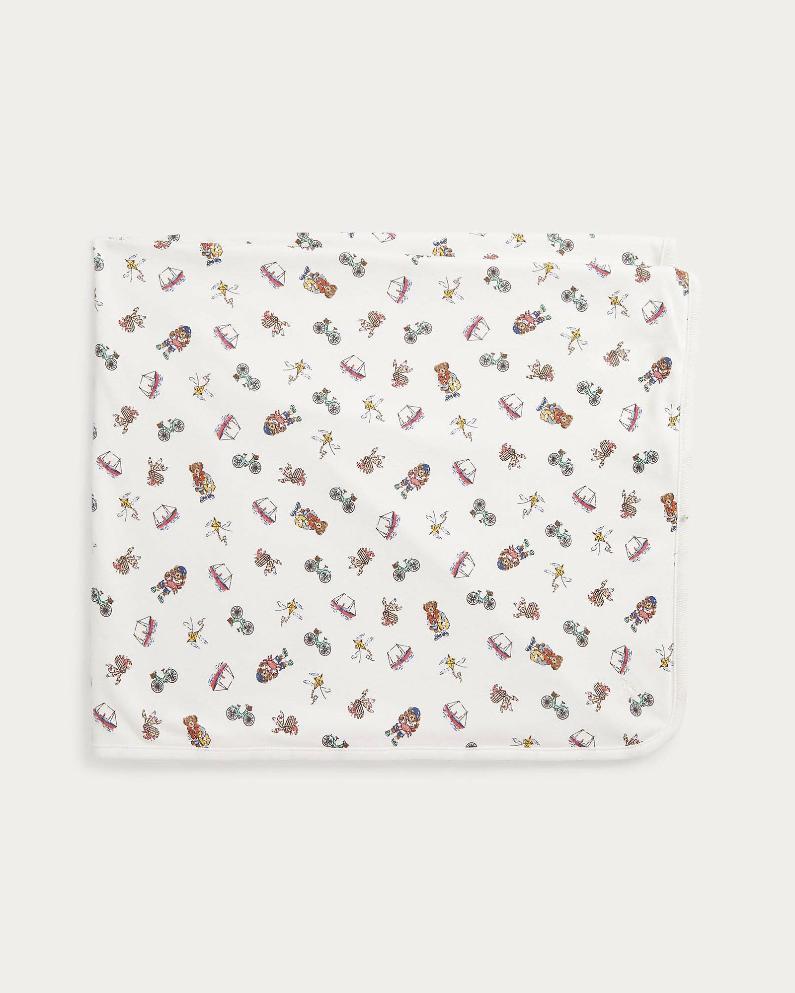 Coperta Polo Ralph Lauren bianca in puro cotone in fantasia disegni multicolor all over