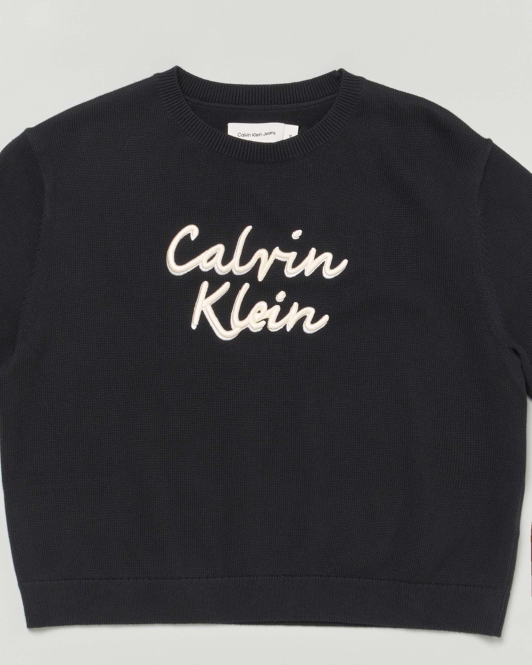 Maglioncino Calvin Klein nero in puro cotone con scritta logo bianca