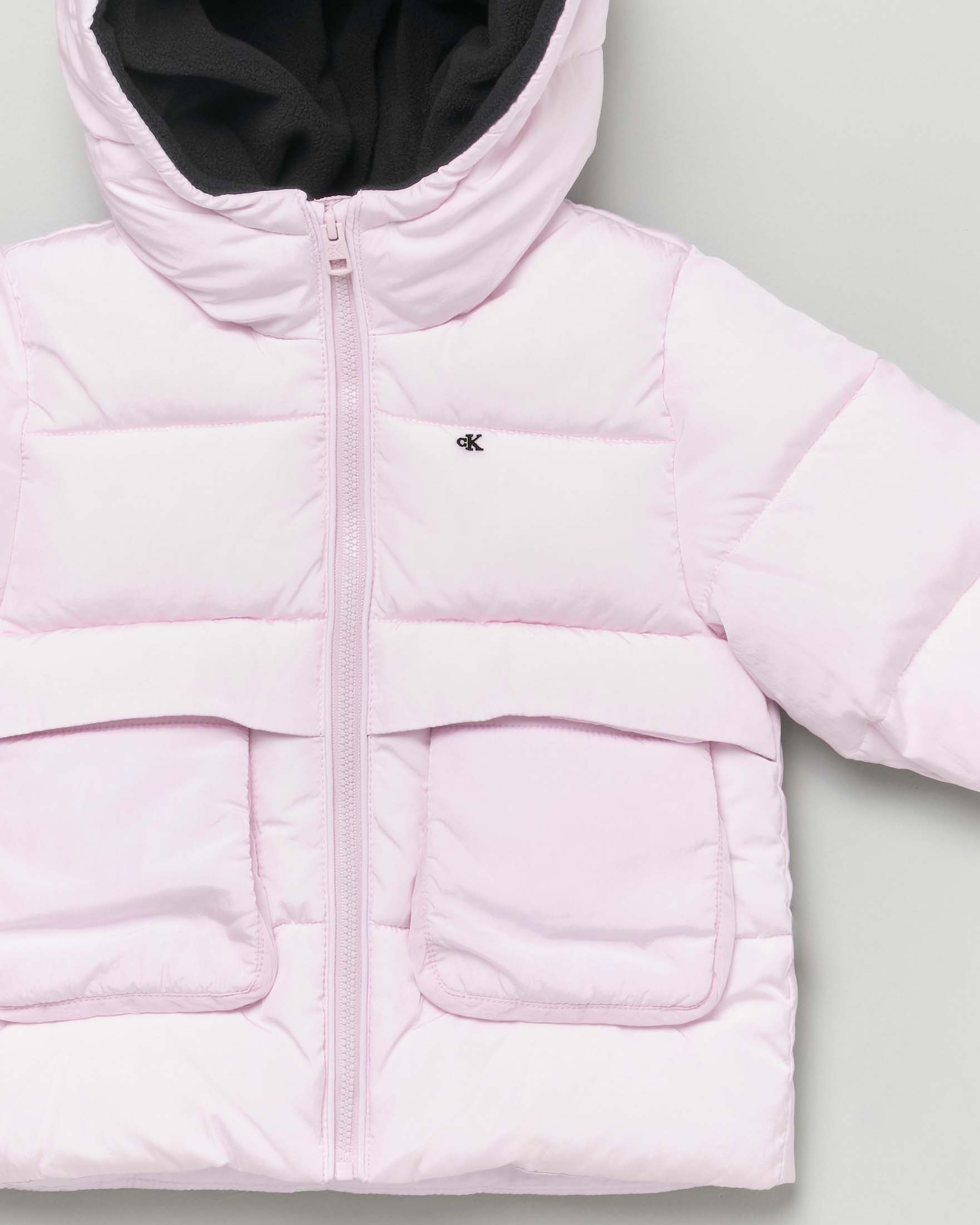 Giaccone Calvin Klein rosa in nylon con cappuccio ed interno in pile blu