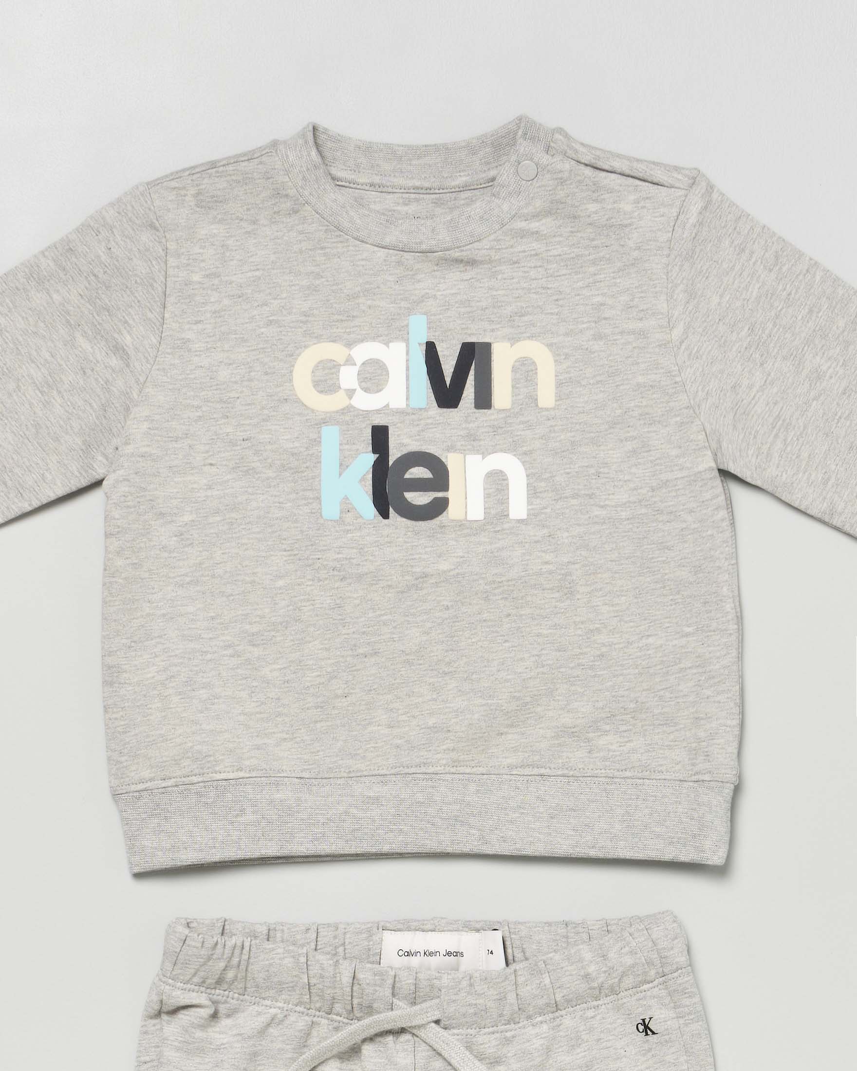 Completo Calvin Klein maglia e pantalone grigi in cotone garzato con logo multicolor