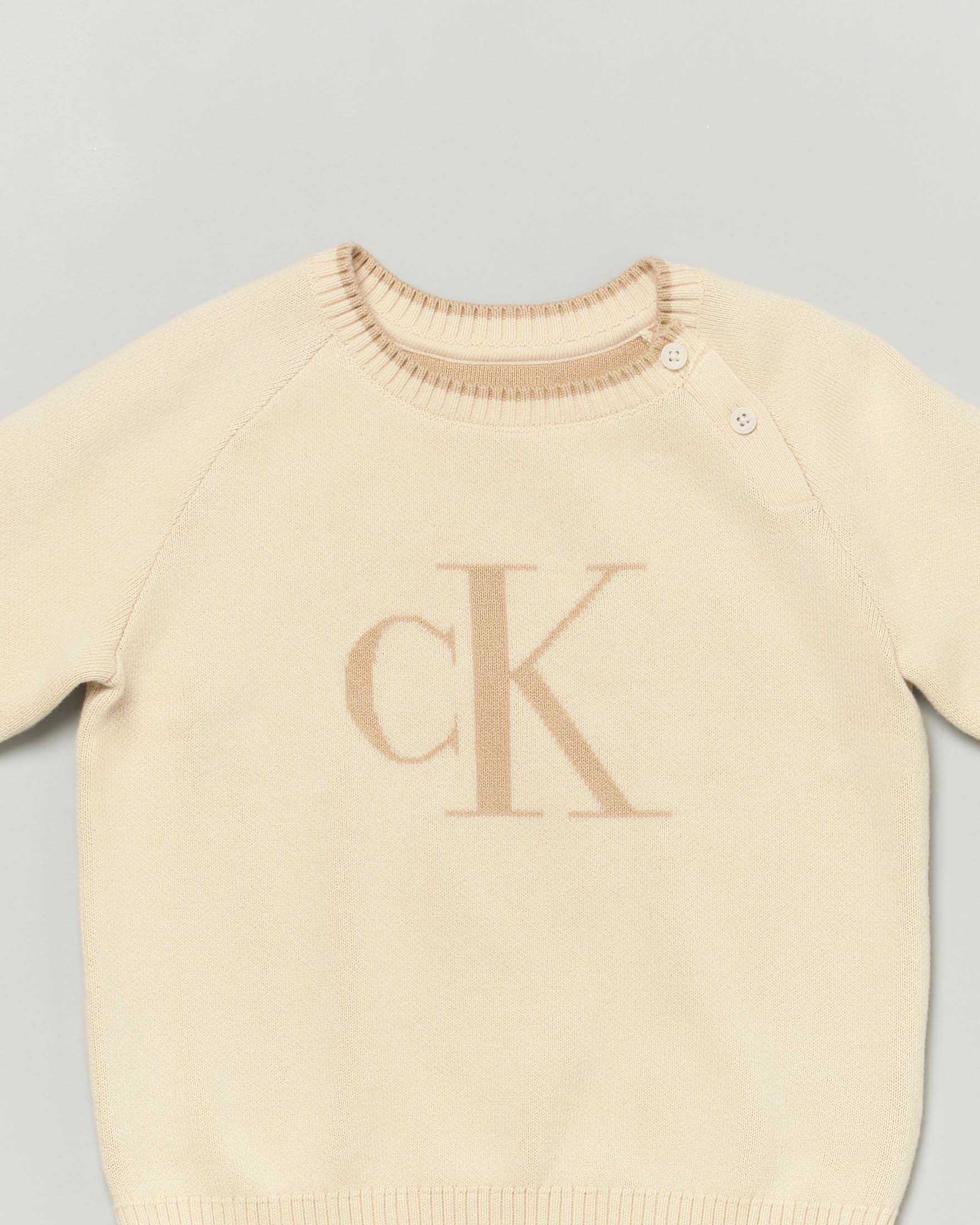 Maglioncino Calvin Klein avorio in cotone con logo monogram beige