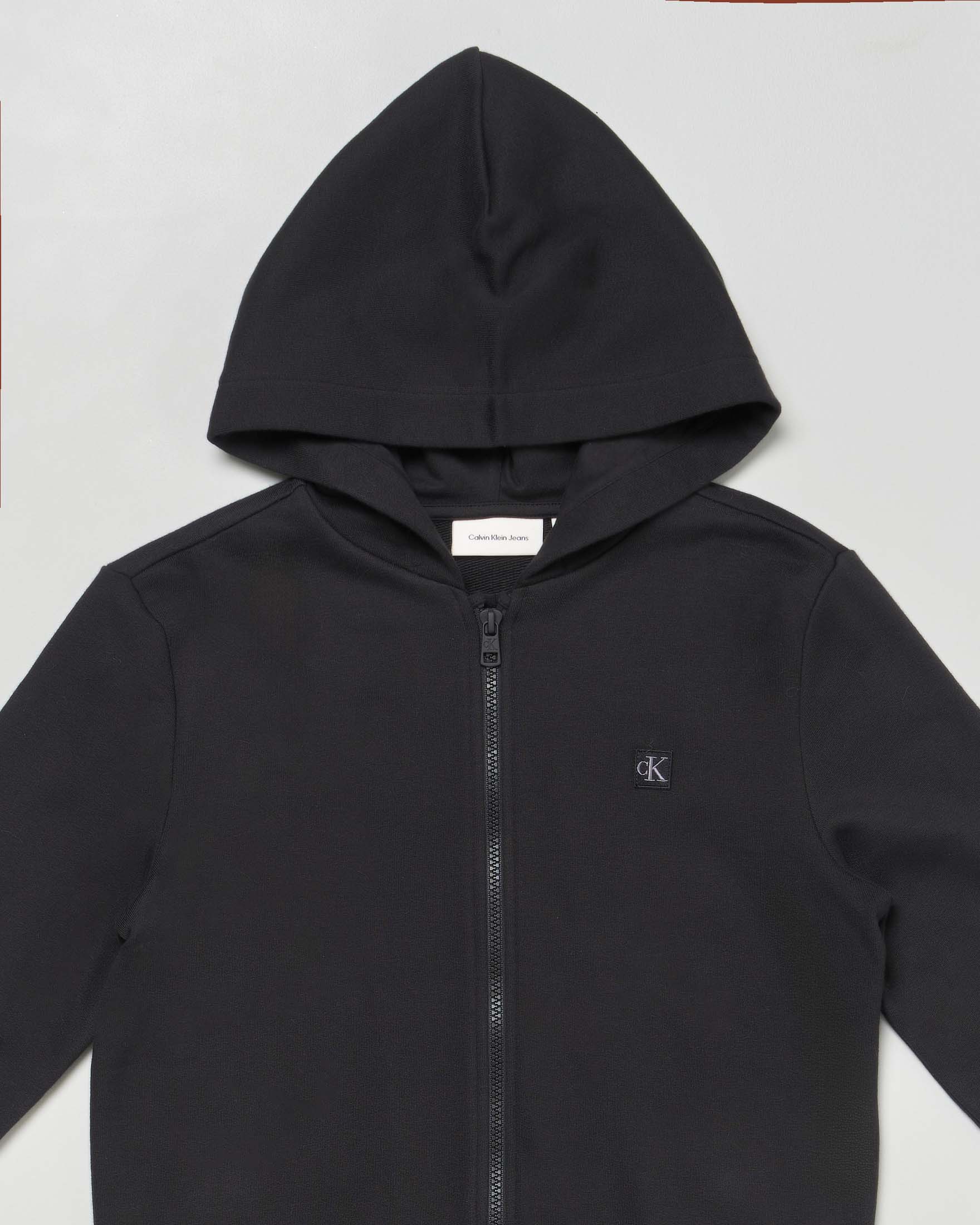 Felpa Calvin Klein nera in cotone con cappuccio e zip