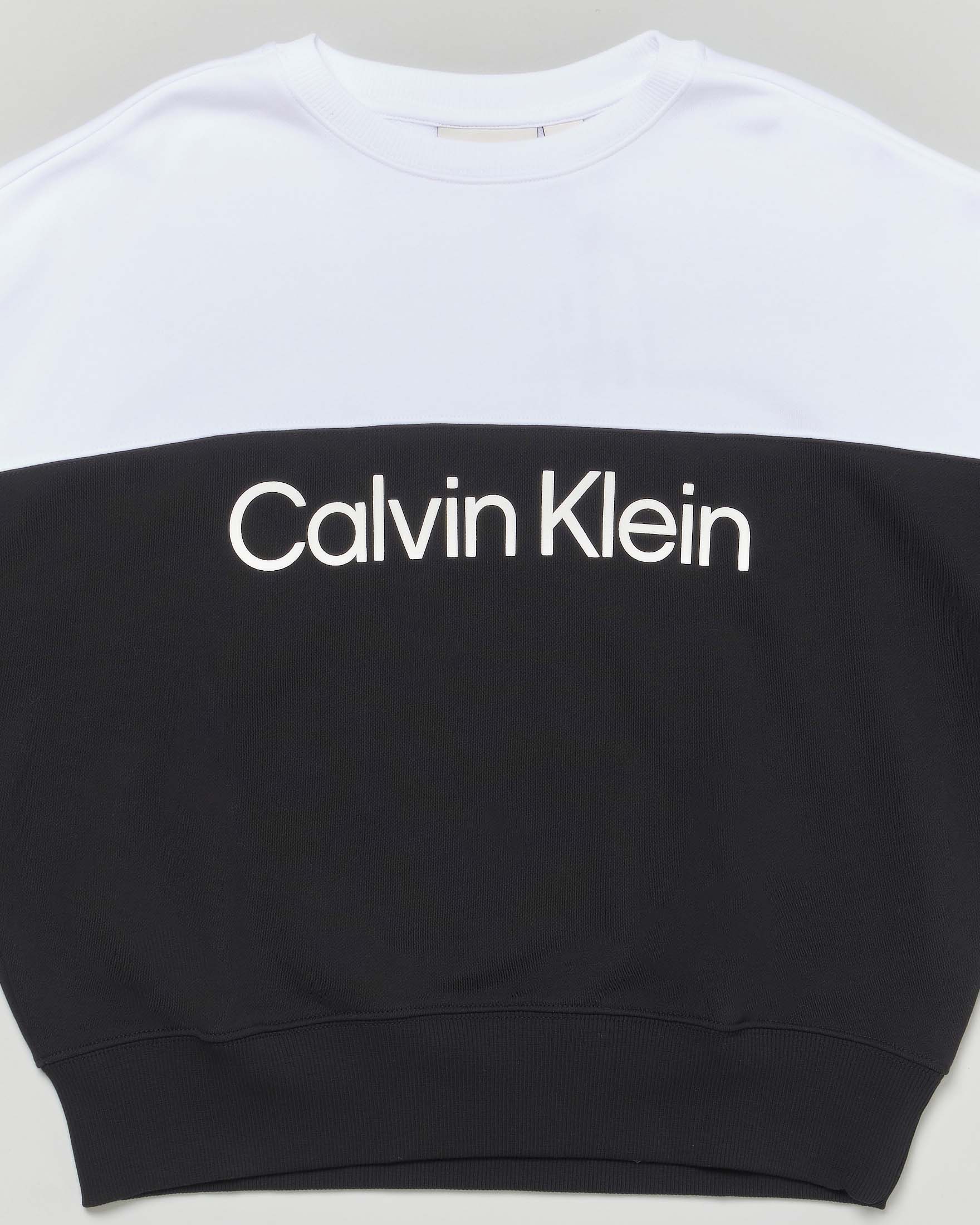 Felpa Calvin Klein color block bianco nero e verde in puro cotone garzato
