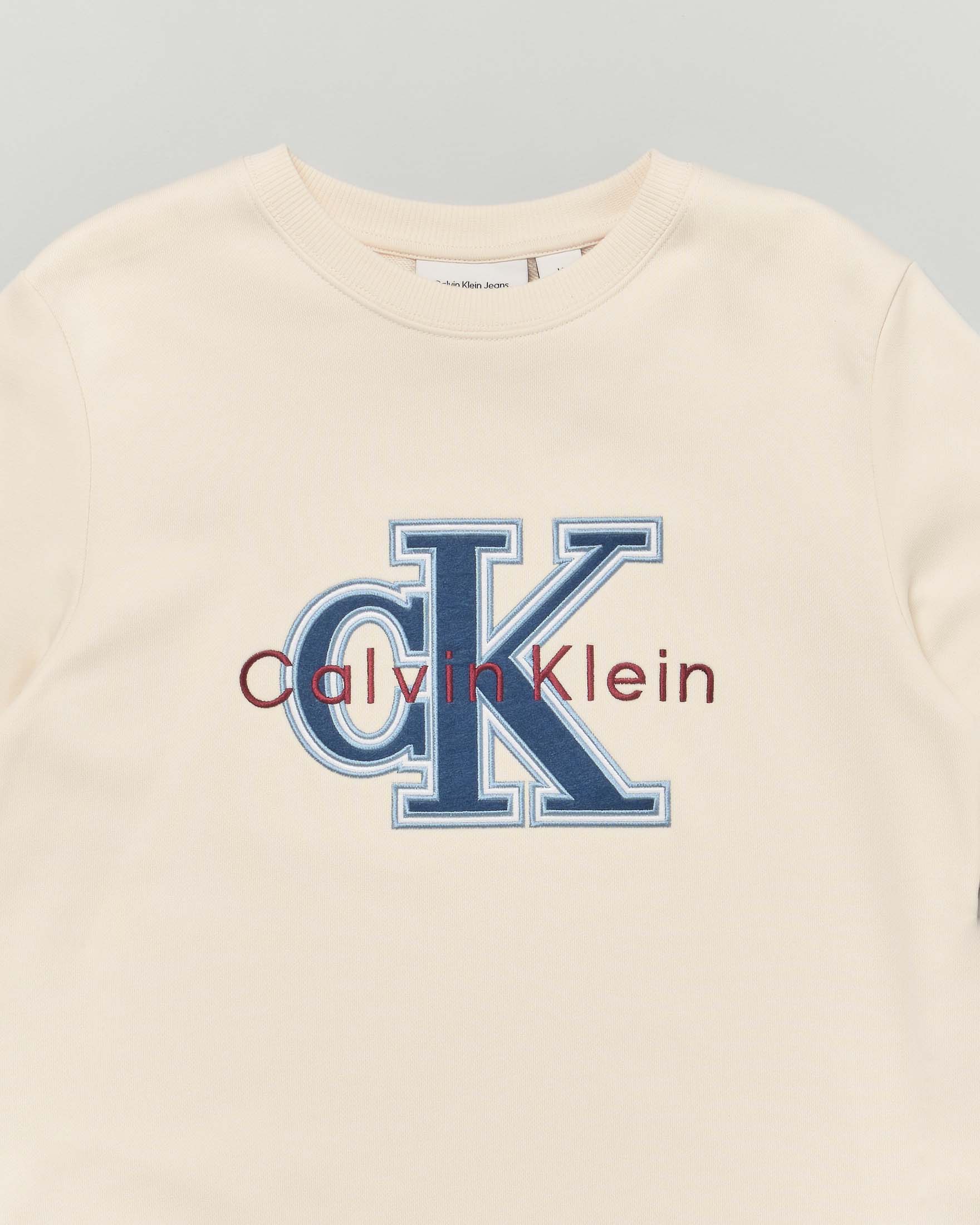Felpa Calvin Klein beige a maniche lunghe con logo monogram azzurro
