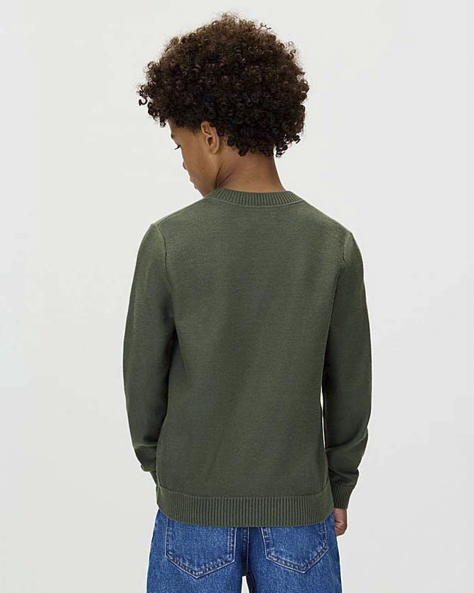 Maglioncino Calvin Klein verde militare in puro cotone con mini patch logo