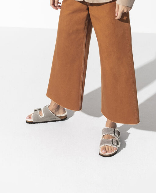 Sandalo Arizona color gesso in pelle scamosciata con interno in shearling a contrasto