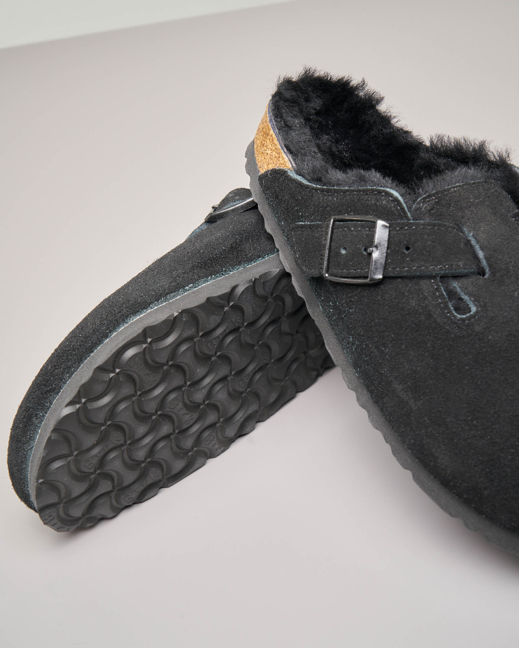 Sabot Boston nero in pelle scamosciata con interno in shearling tono su tono