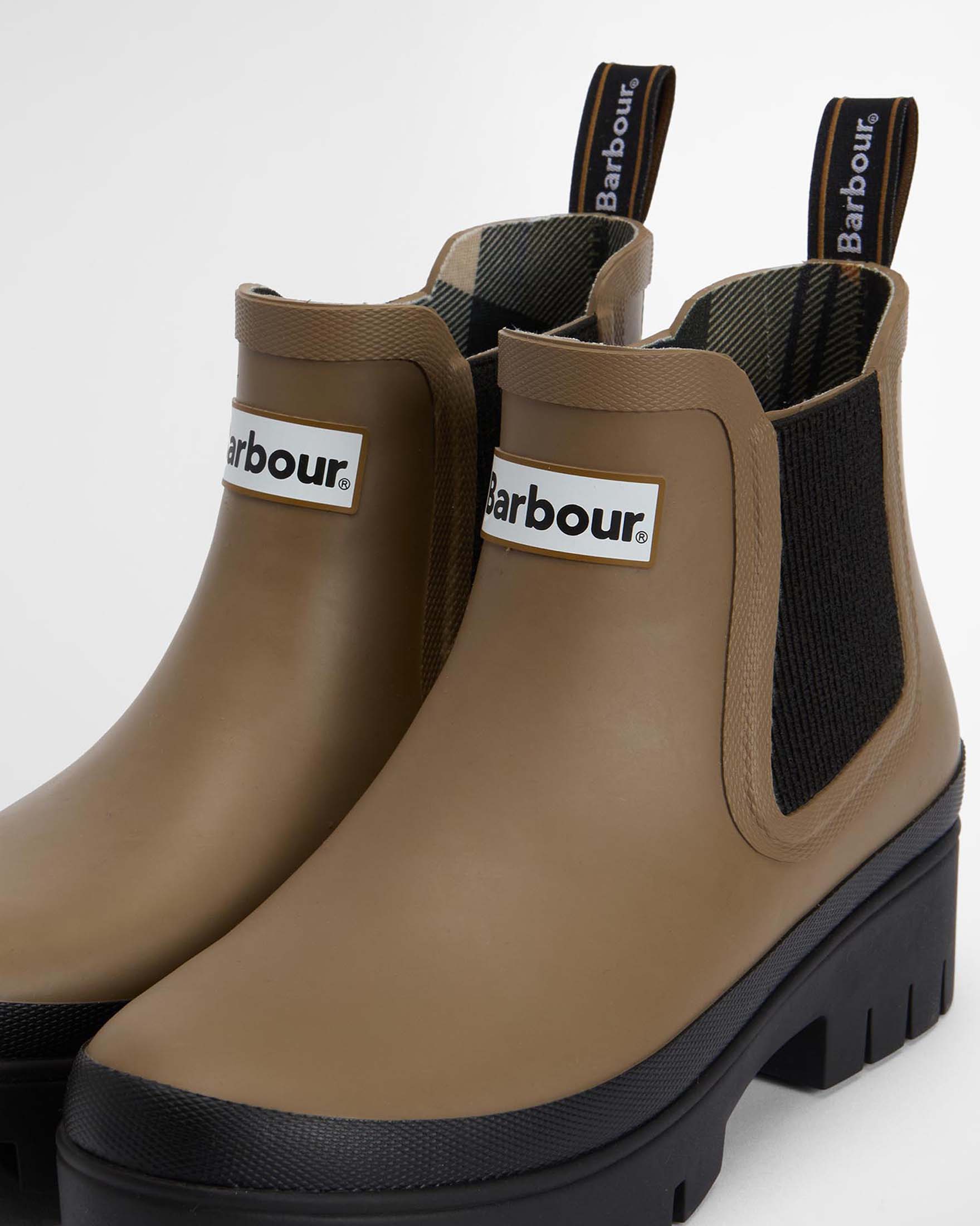 Stivaletti beige in gomma modello Halton Barbour con suola alta in gomma a contrasto di colore