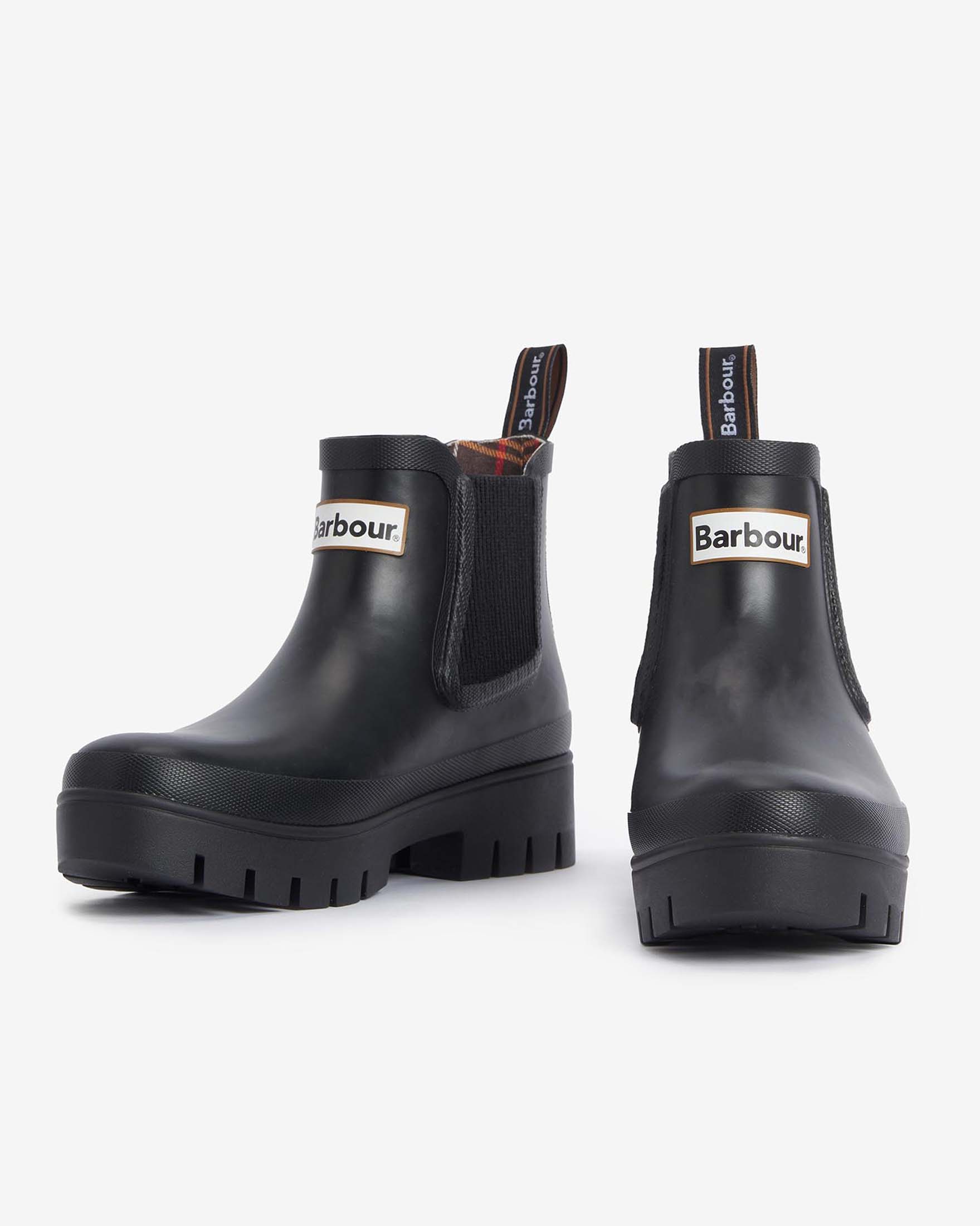 Stivaletti neri in gomma modello Halton Barbour con suola alta in gomma a carrarmato