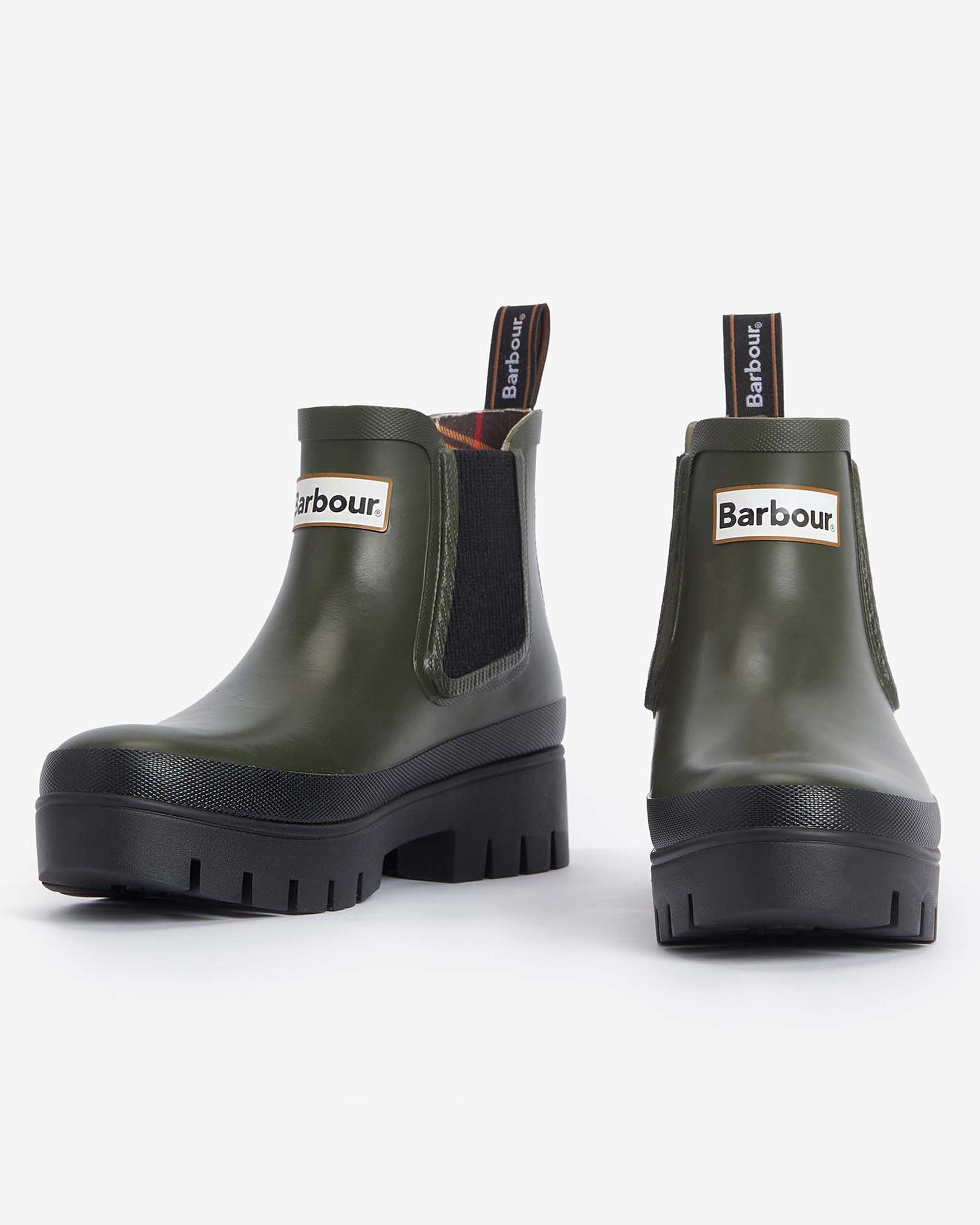 Stivaletti verde militare in gomma modello Halton Barbour con suola alta in gomma a contrasto di col...