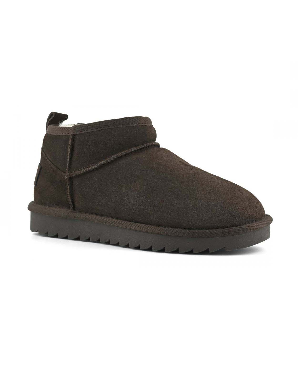 Stivaletto ultra basso color taupe in pelle scamosciata con fodera interna in montone tono su tono