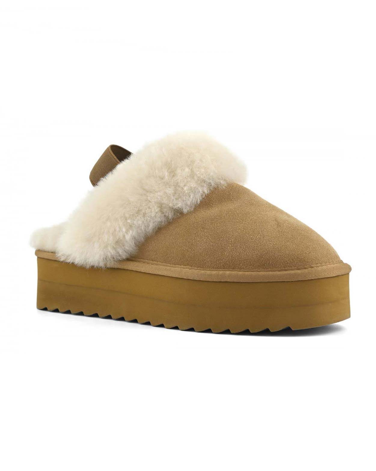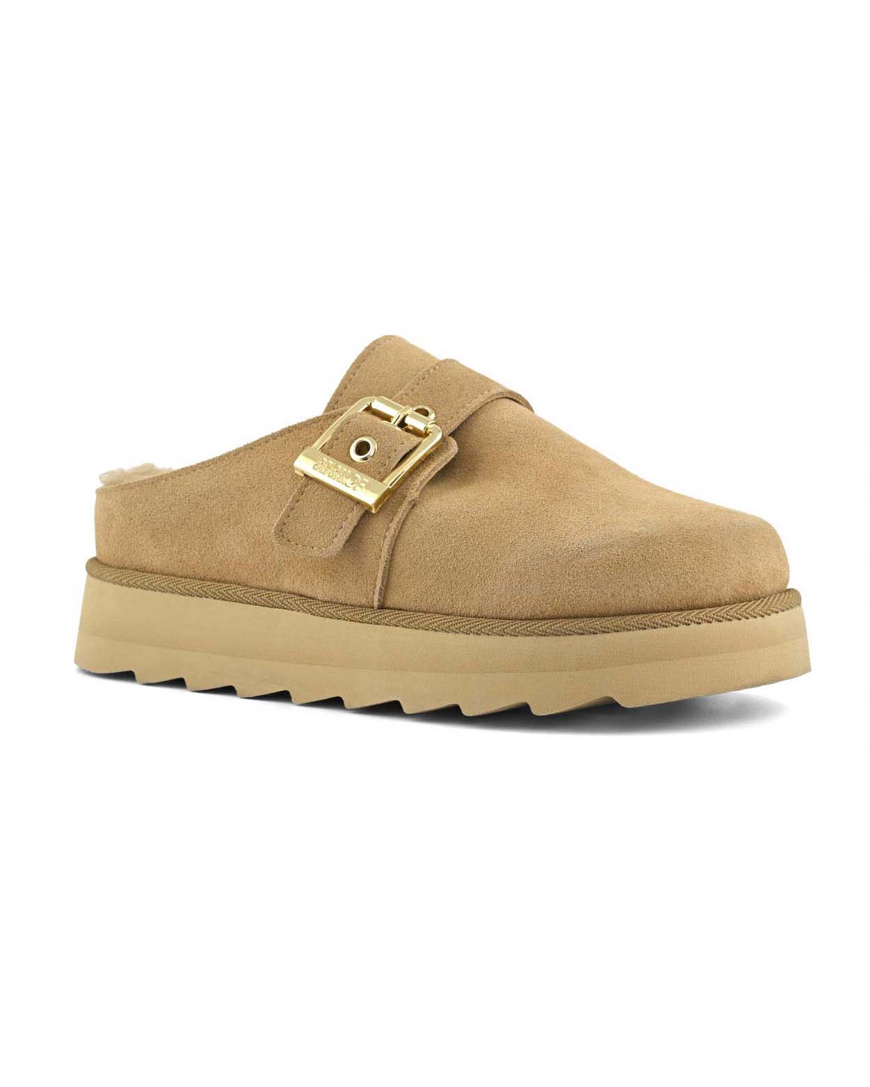 Sabot color cammello Colors of California in pelle scamosciata e fodera in montone