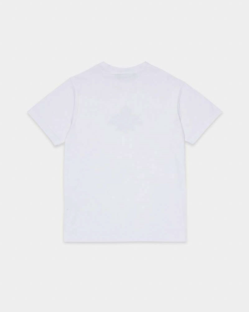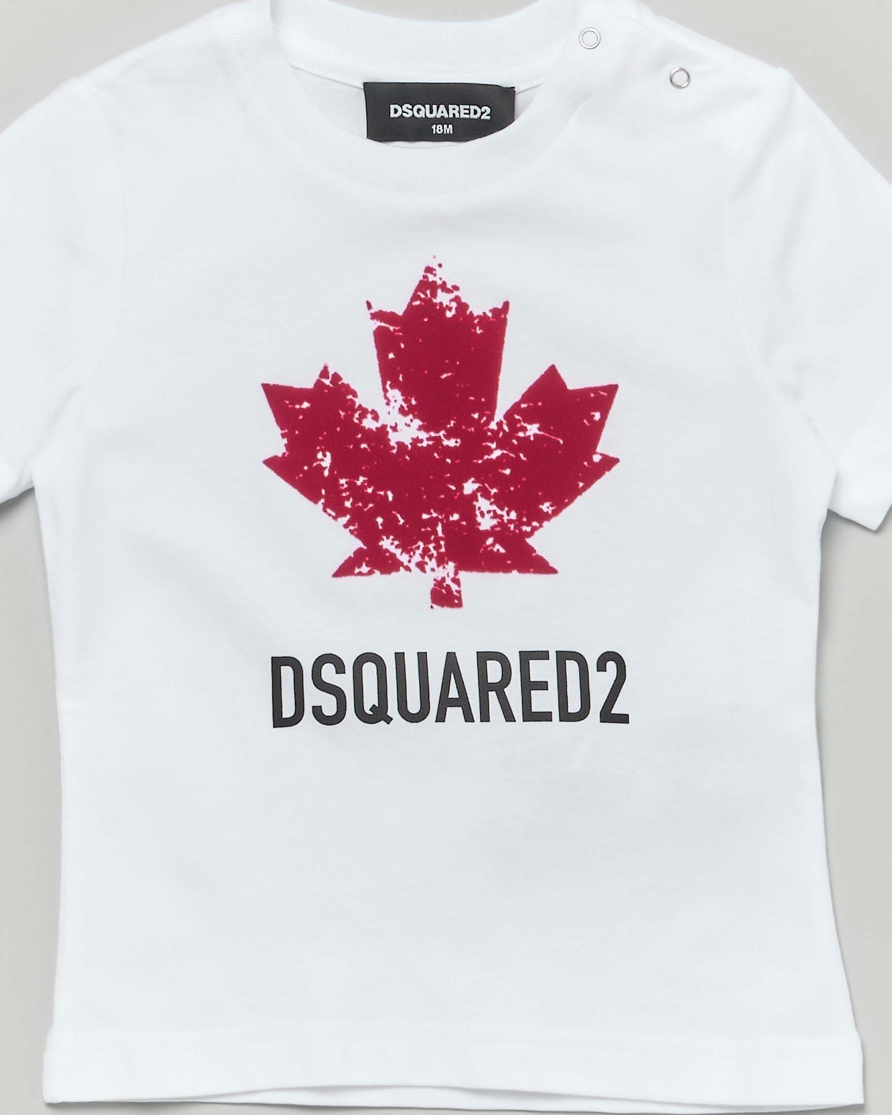 T-shirt Dsquared2 bianca in puro cotone a maniche corte ce foglia logo rossa
