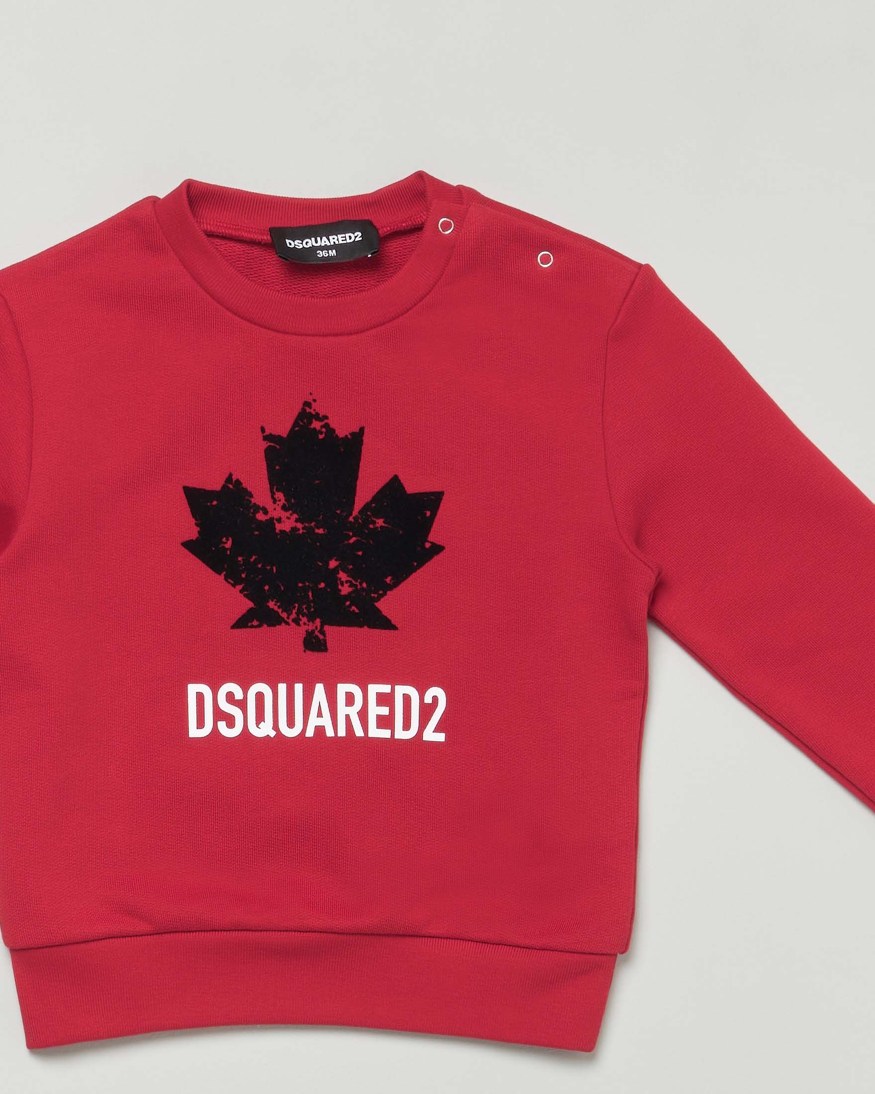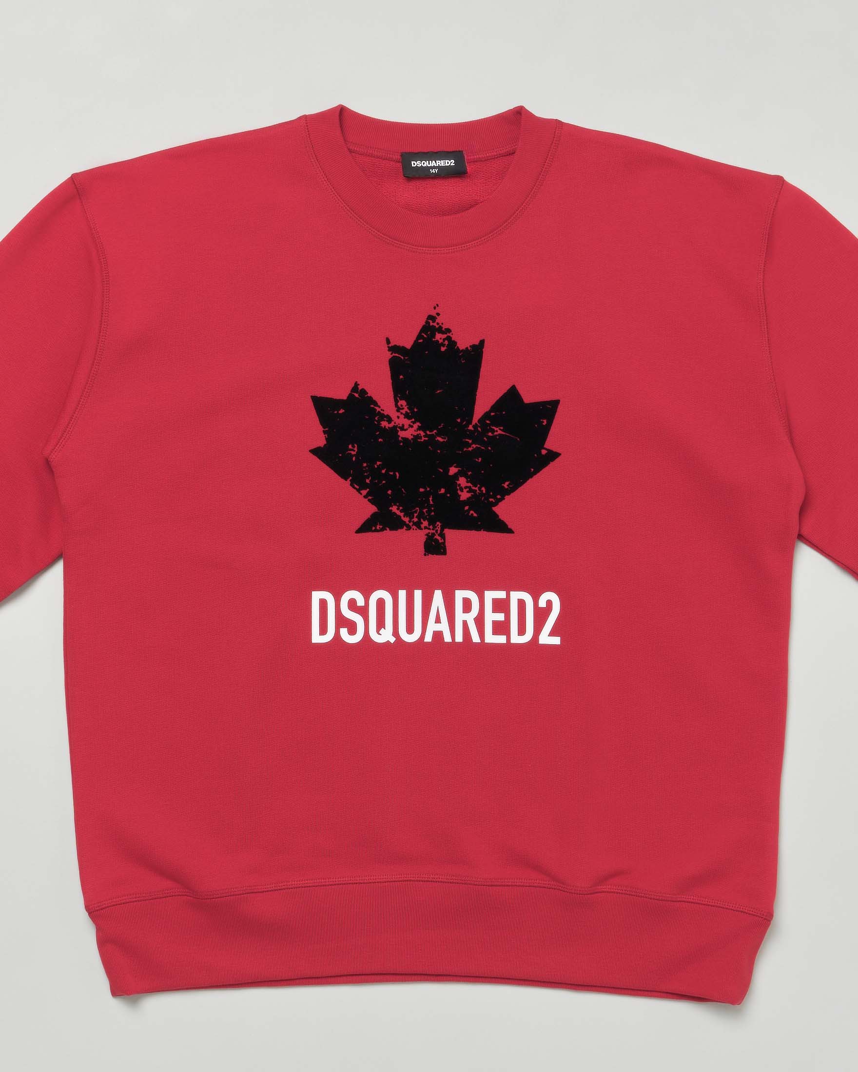 Felpa girocollo Dsquared2 rossa in puro cotone con maxi foglia logo
