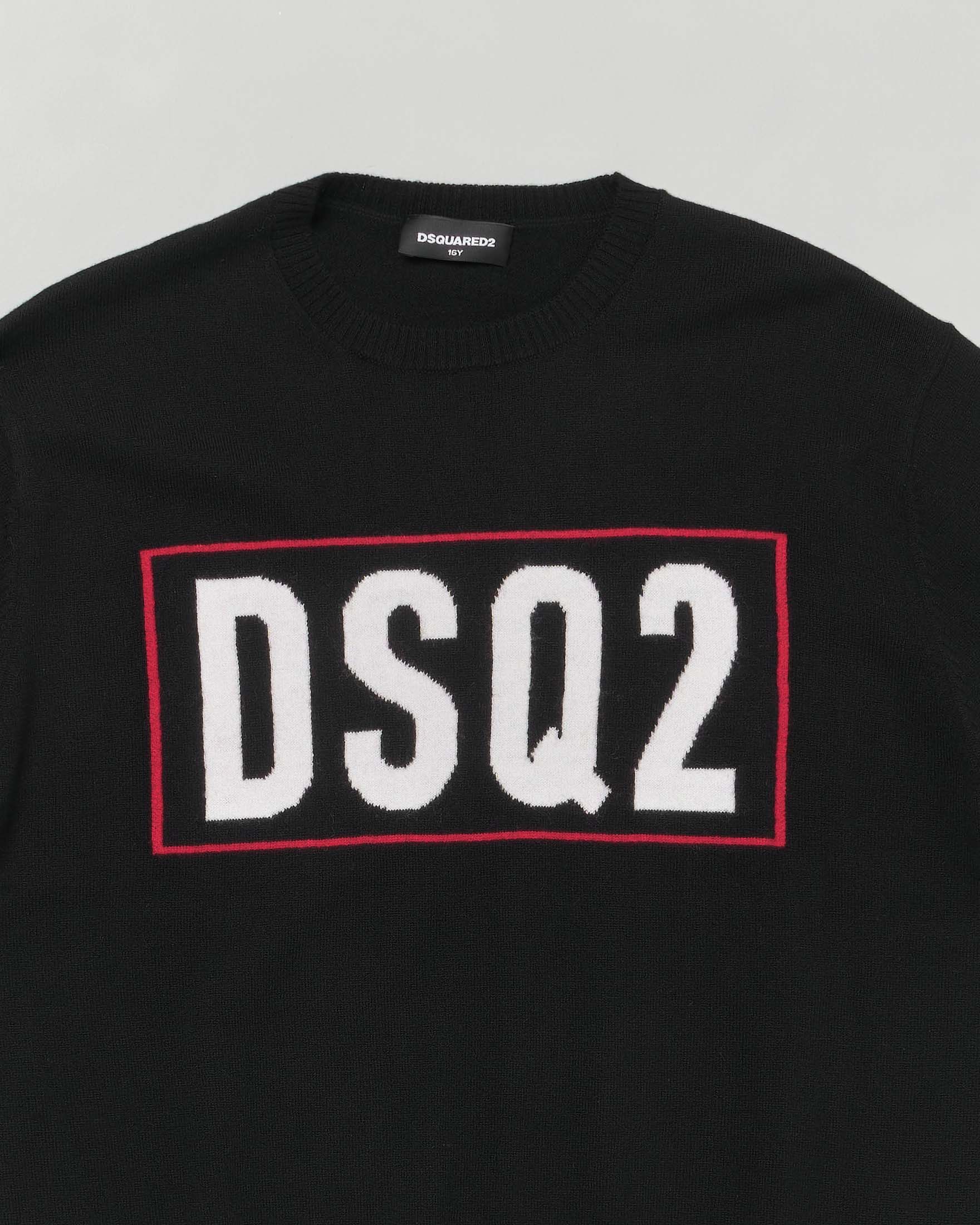 Maglioncino Dsquared2 nero in lana con scritta logo rossa e bianca