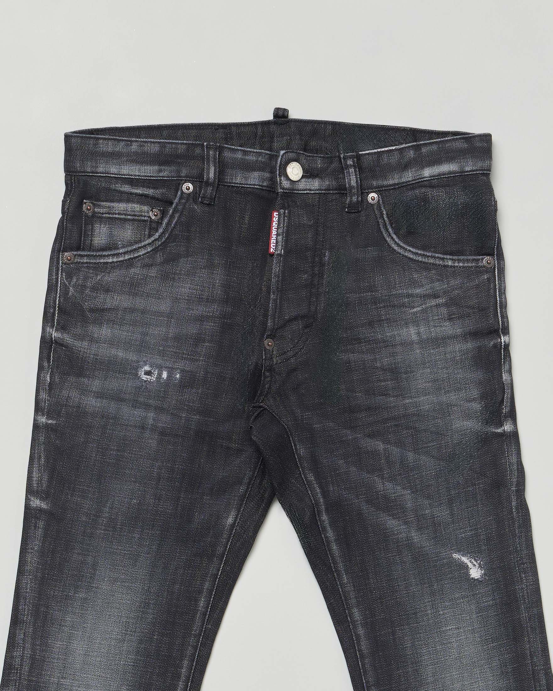 Jeans slim Dsquared2 lavaggio nero stone washed con baffature