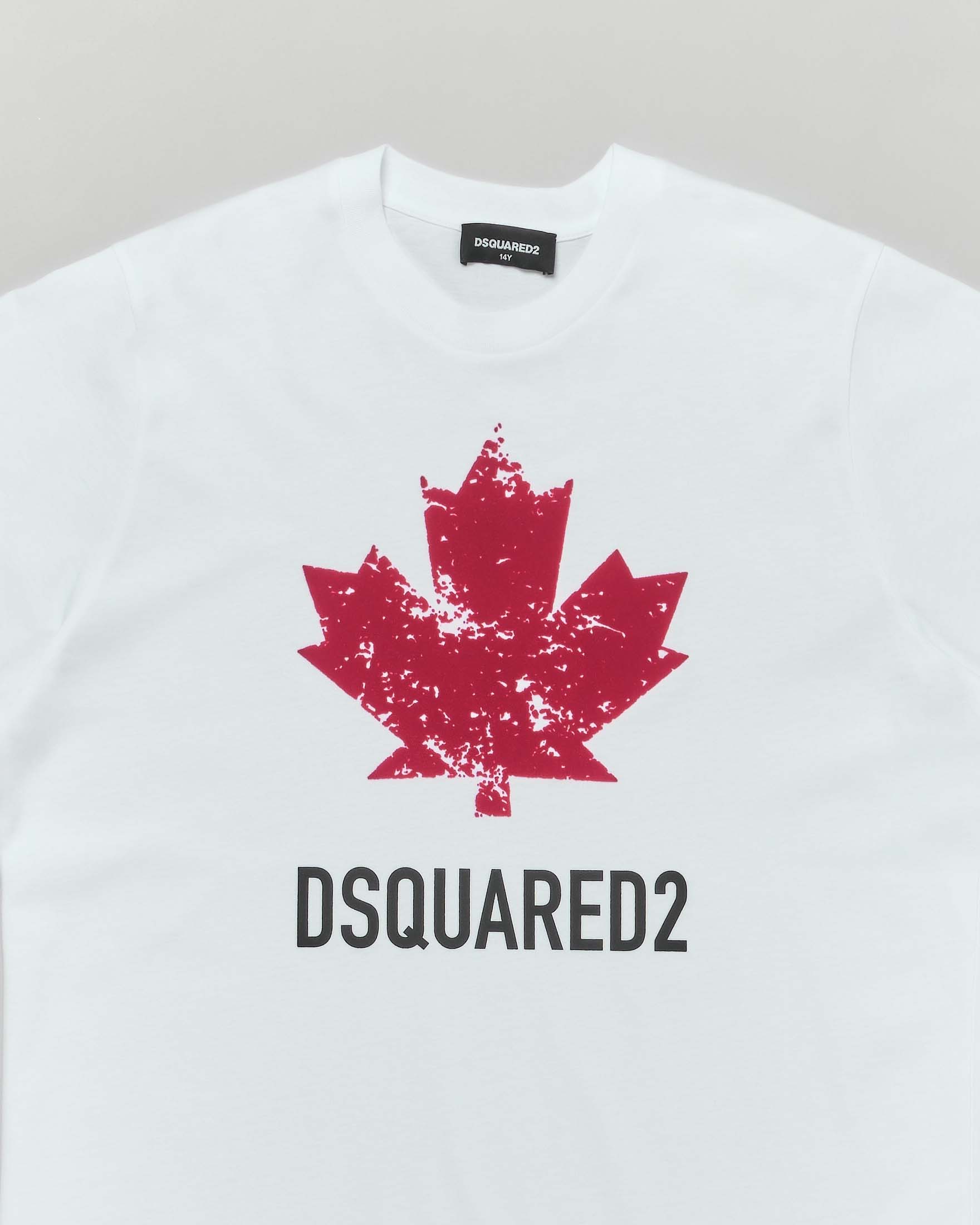 T-shirt Dsquared2 bianca in puro cotone con foglia logo rossa
