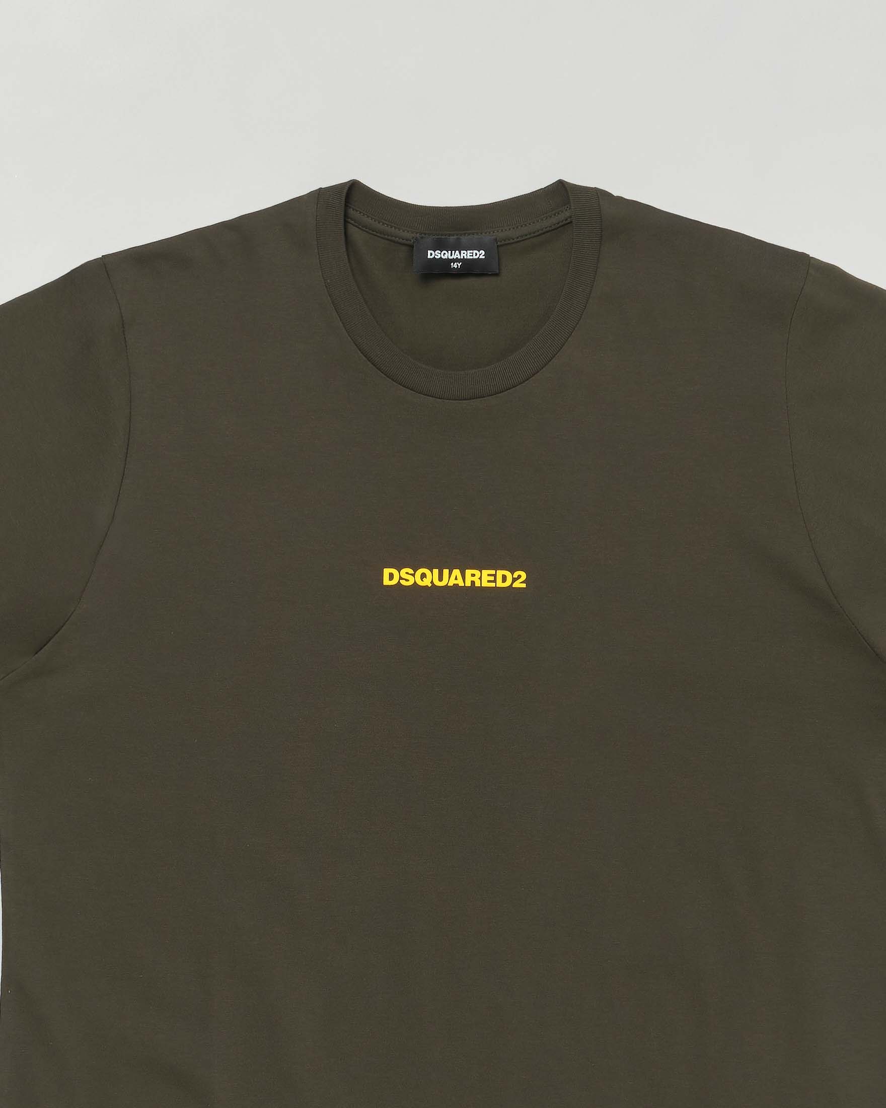 T-shirt Dsquared2 relaxed fit verde militare in puro cotone con mini logo giallo