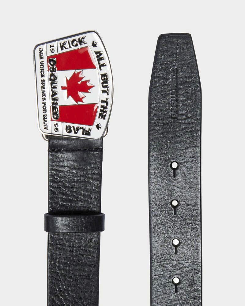 Cintura Dsquared2 in pelle nera con placca foglia bianca e rossa