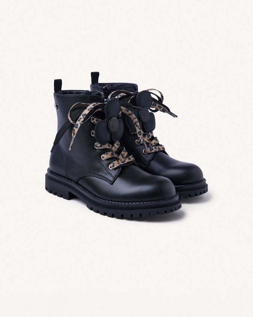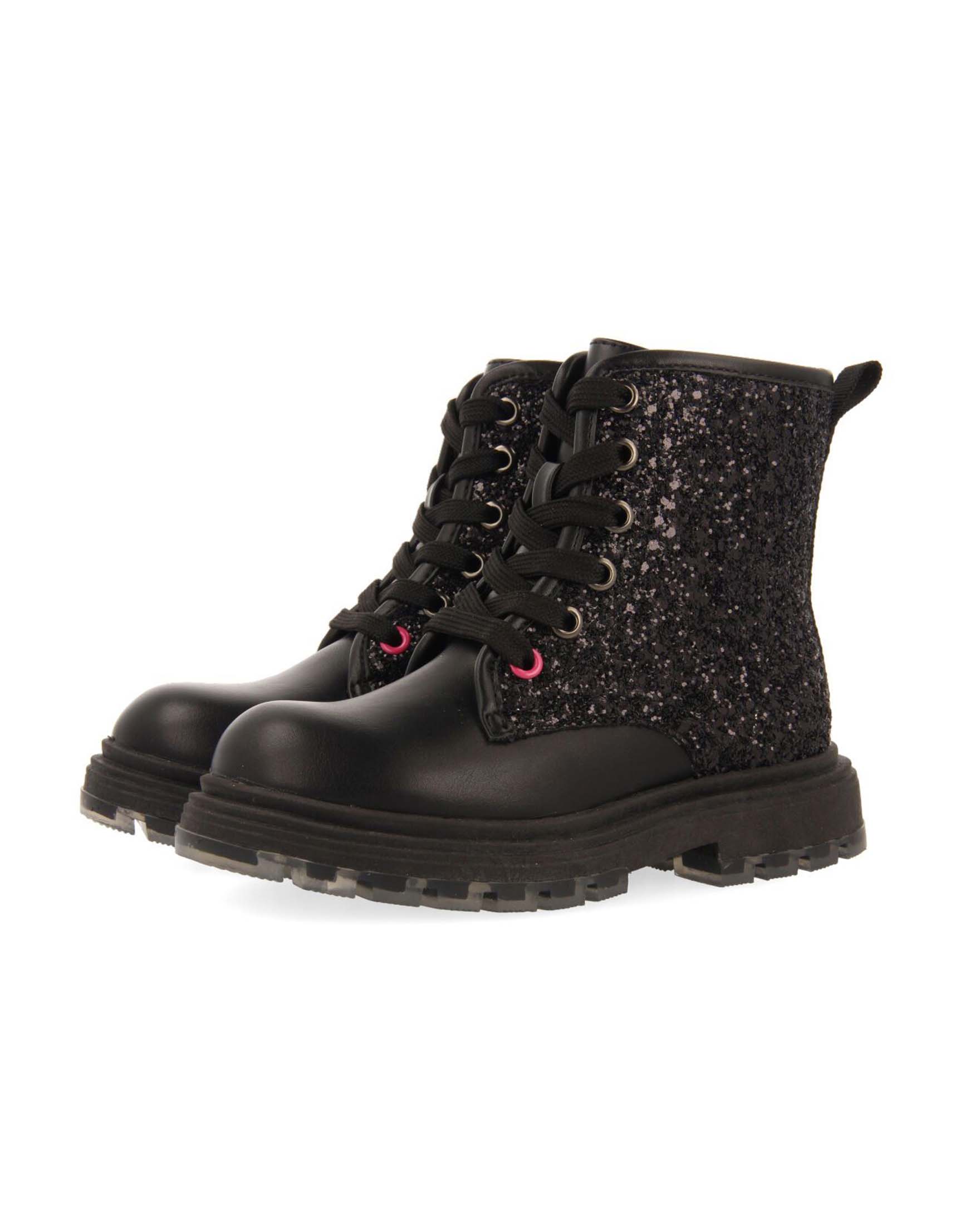 Anfibio Mulliken Gioseppo nero glitterato in pelle con fiore e lacci maculati