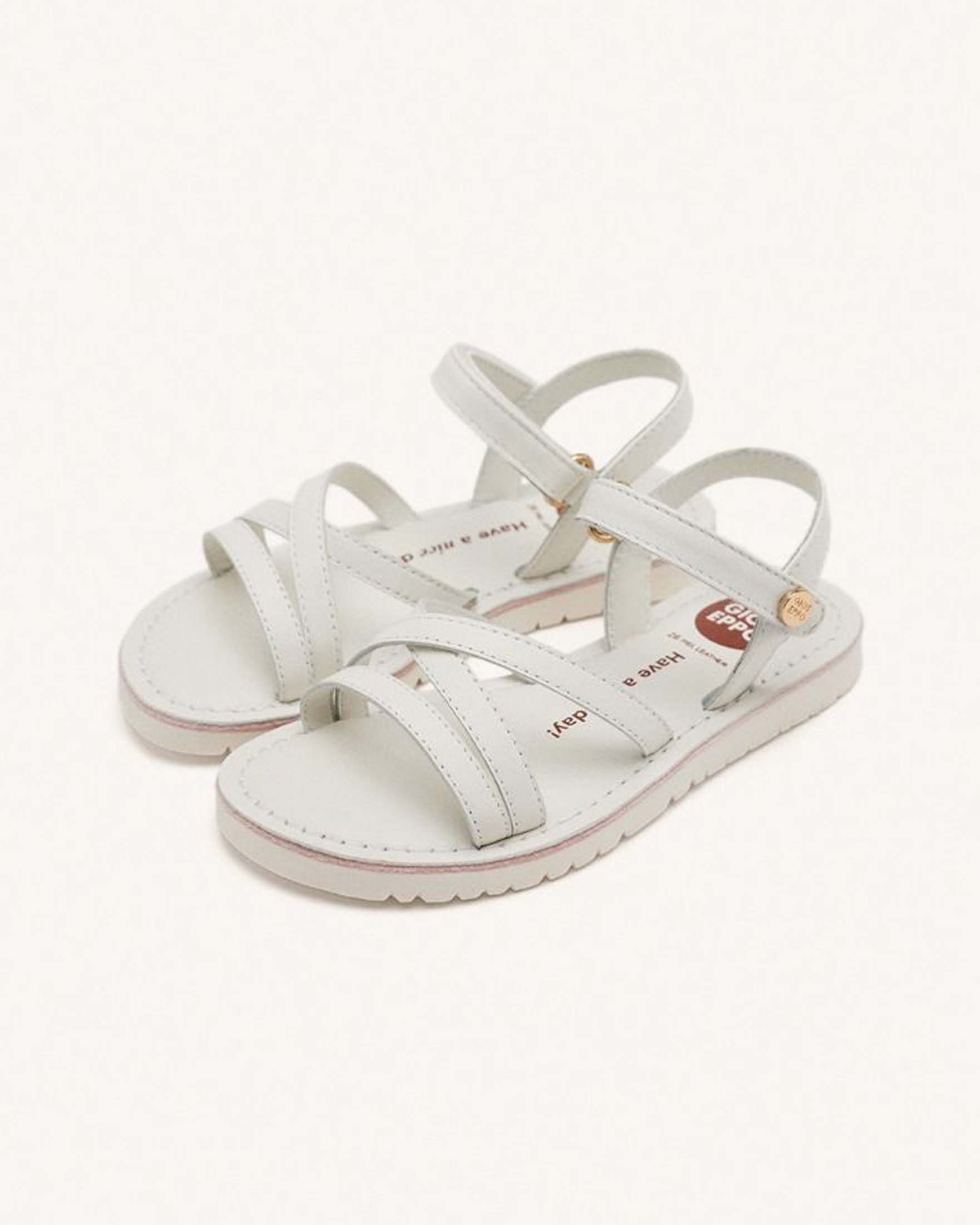 Sandalo bianco con fascette intrecciate in pelle