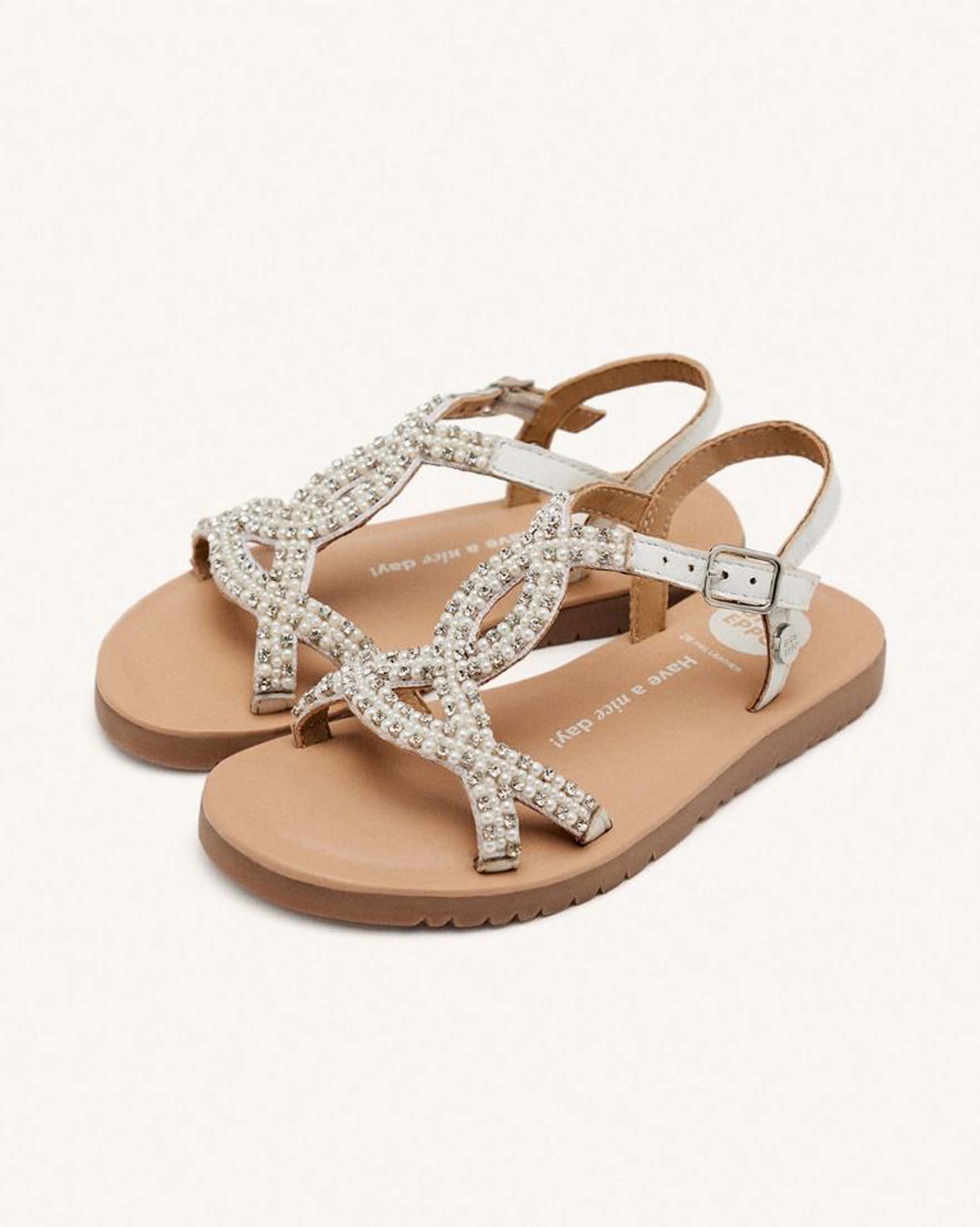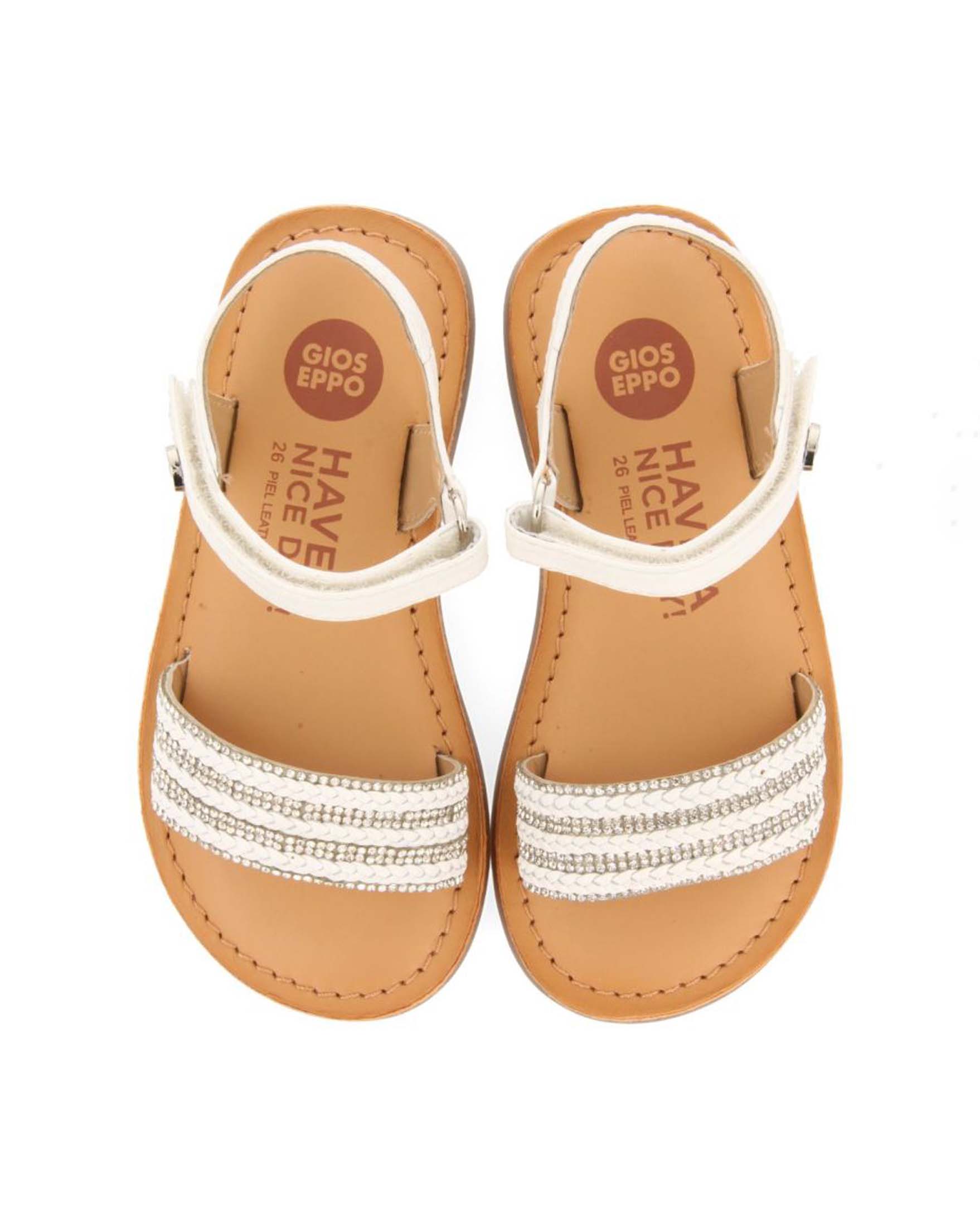 Sandalo bianco in pelle con fascetta in strass