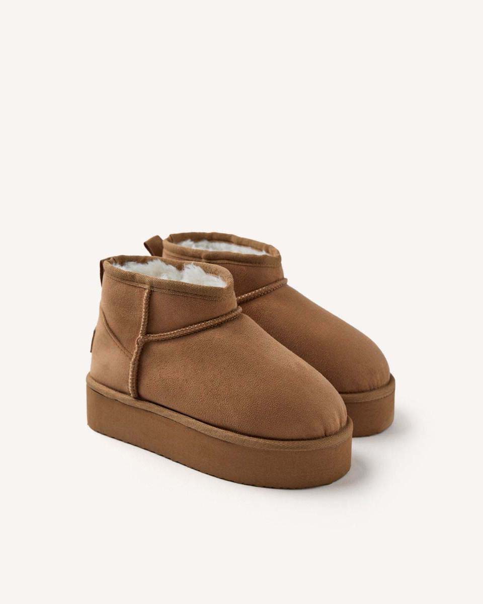 Stivaletti con plateau Gioseppo color caramello idrorepellenti in microfibra con ecopelliccia intern...
