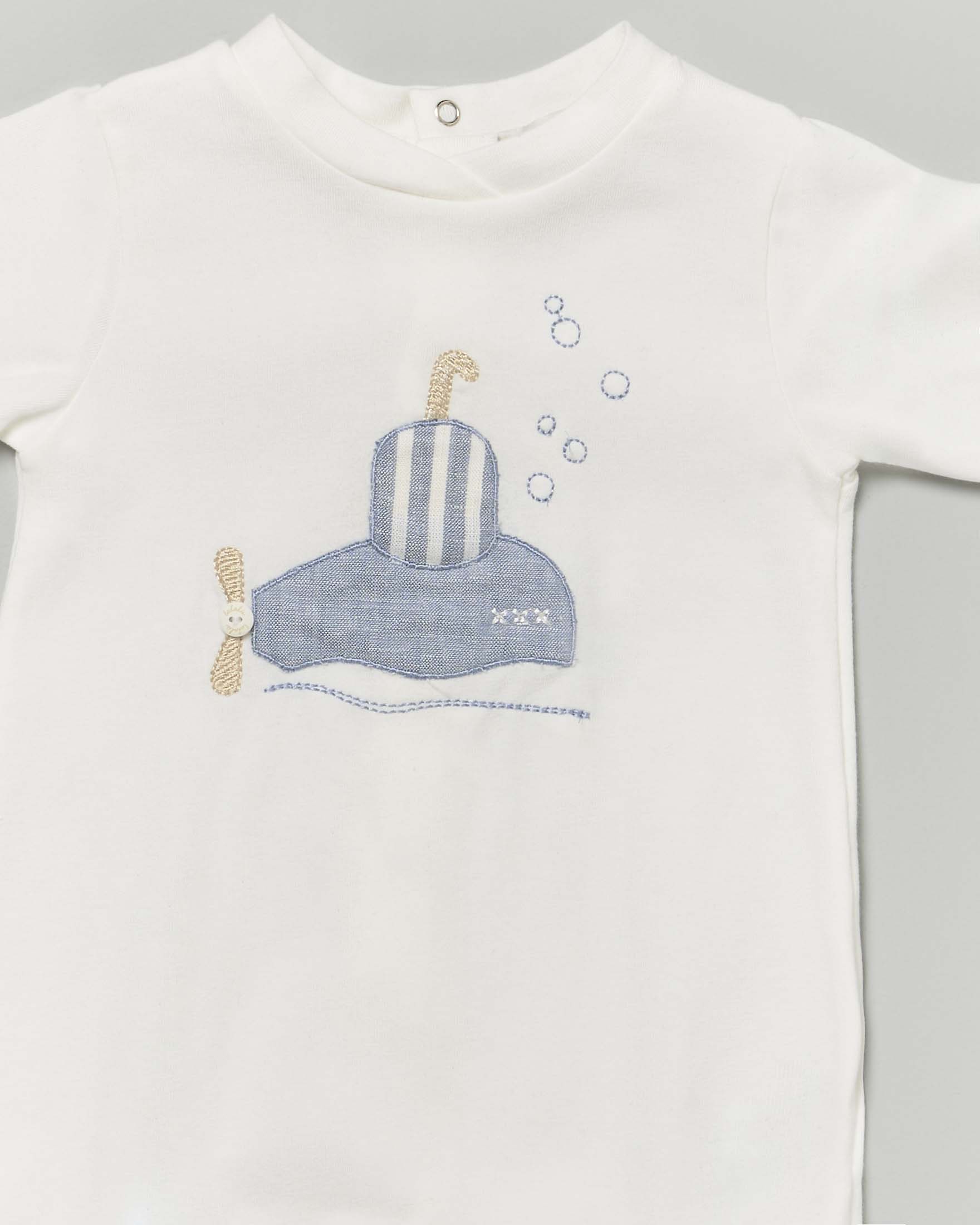 Tutina Lalalù avorio in cotone stretch con ricamo sommergibile