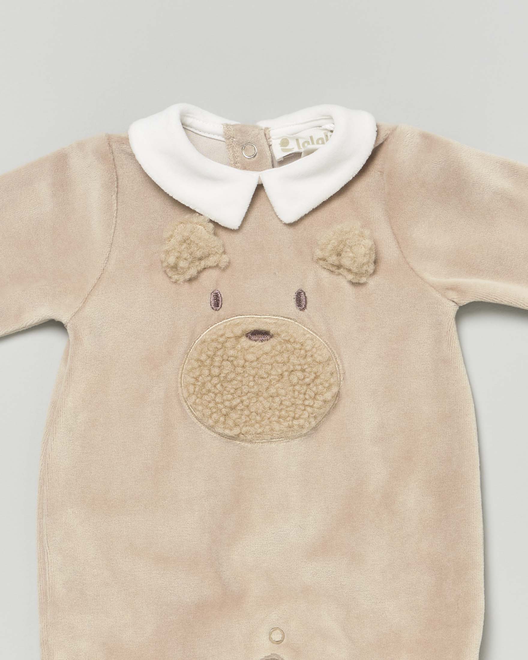 Tutina Lalalù in ciniglia beige con orsetto teddy
