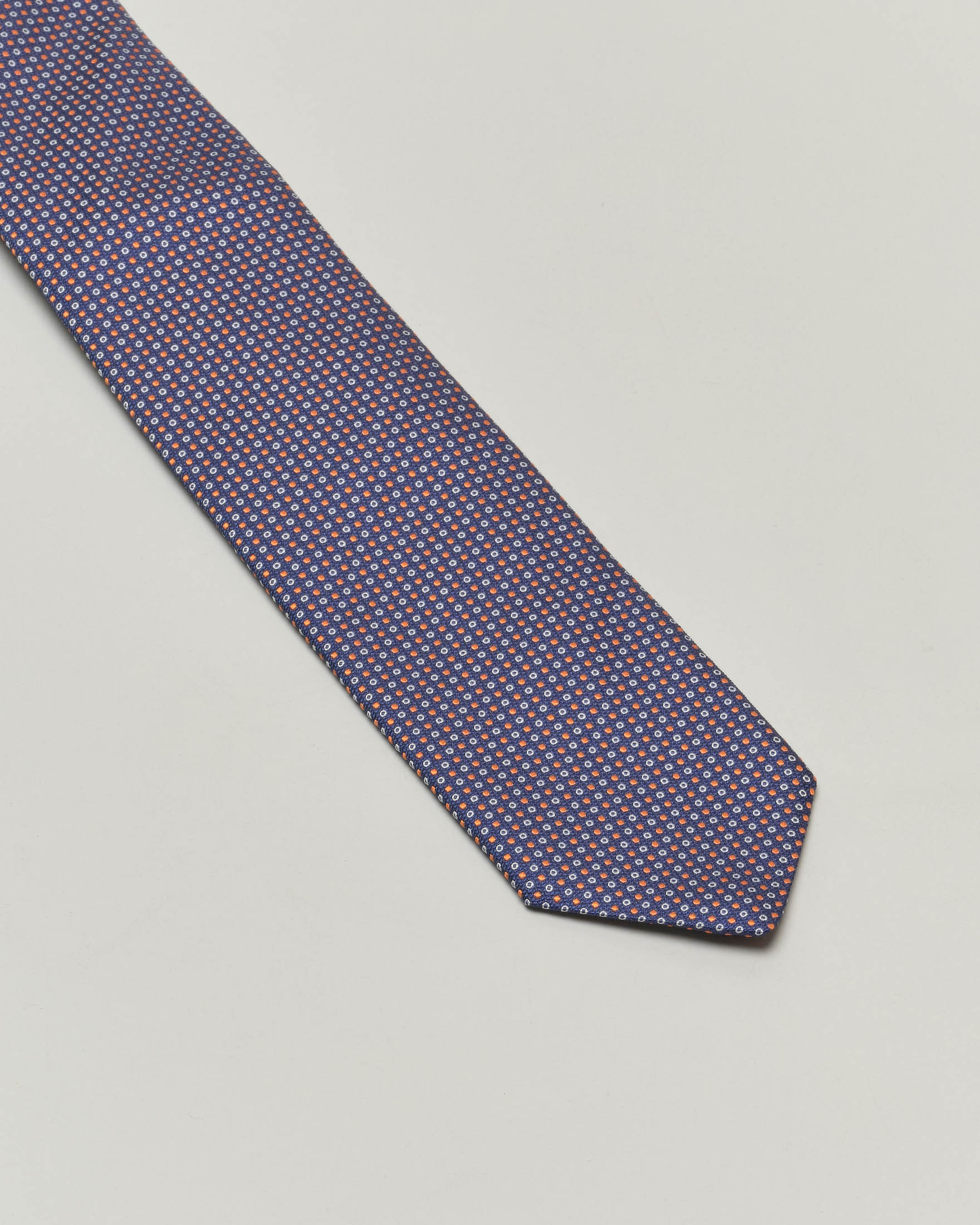 Cravatta blu indaco micro fantasia blu royal e rossa in pura seta