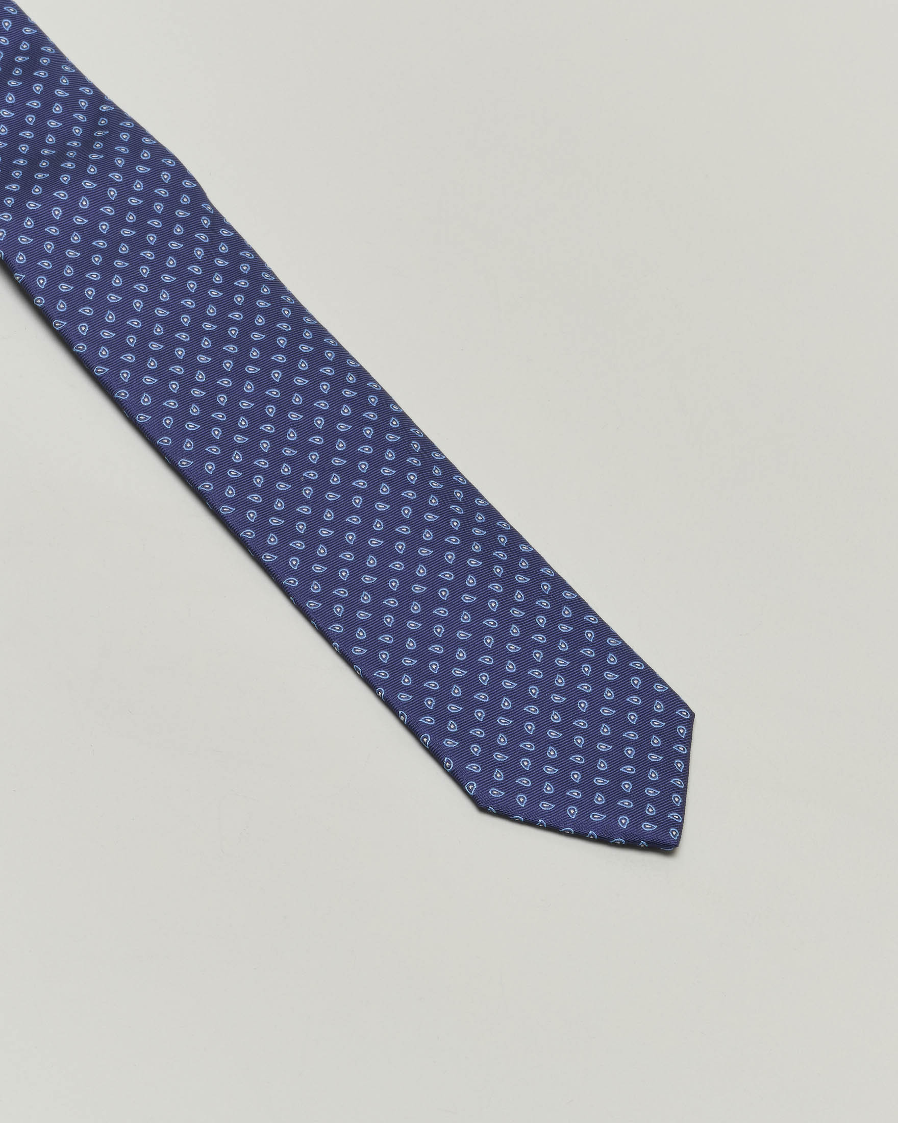 Cravatta blu con micro fantasia cachemire azzurra in pura seta