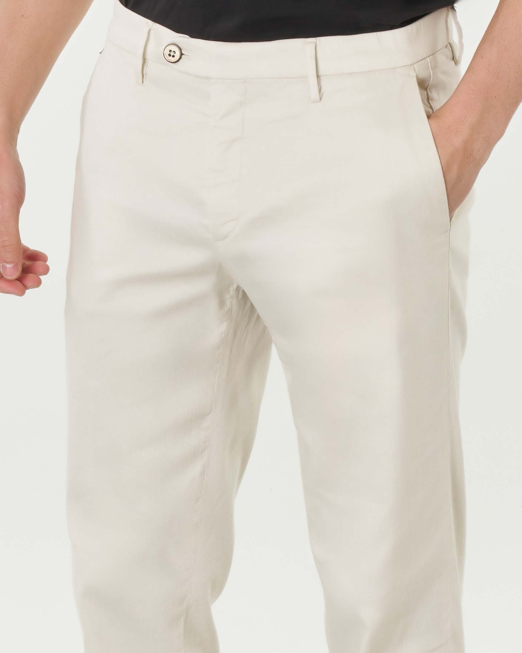 Pantalone chino Brad color panna in misto lino e cotone stretch