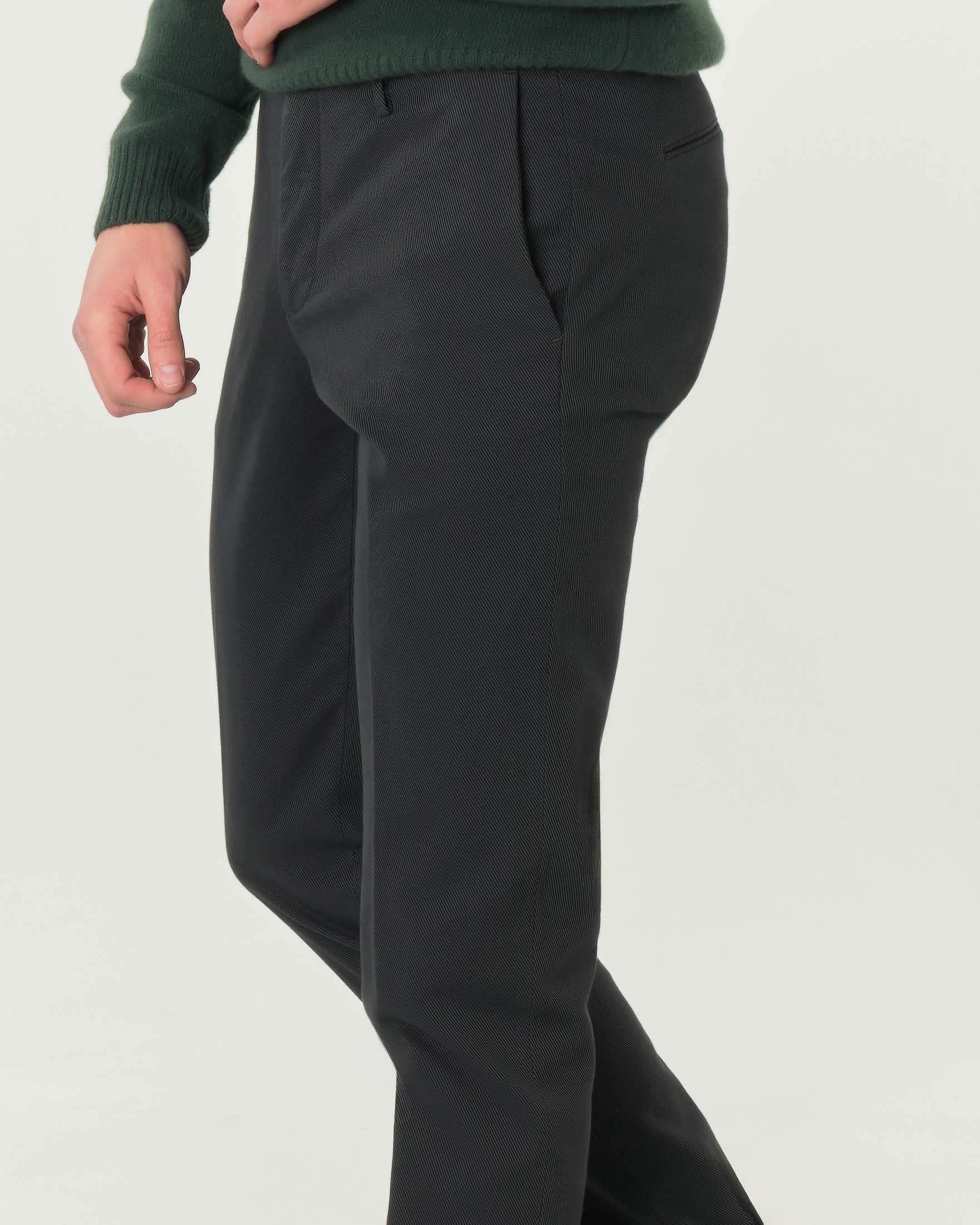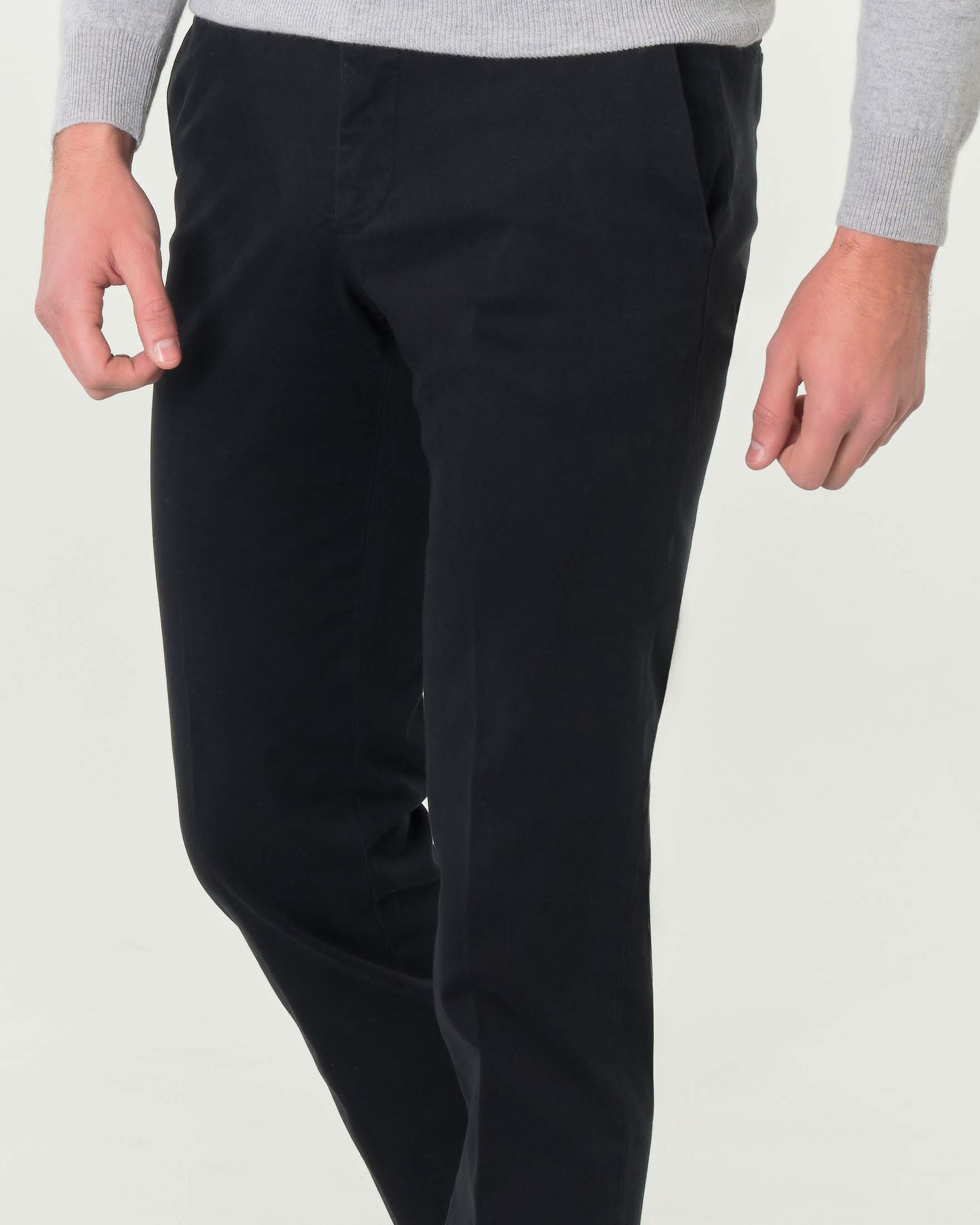Pantalone chino Brad antracite in tessuto ad armatura diagonale nera di cotone stretch