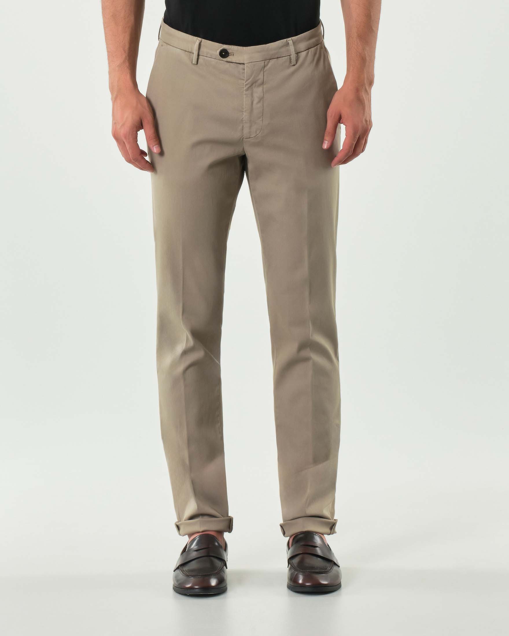 Pantalone chino Brad beige in tessuto armaturato di cotone stretch