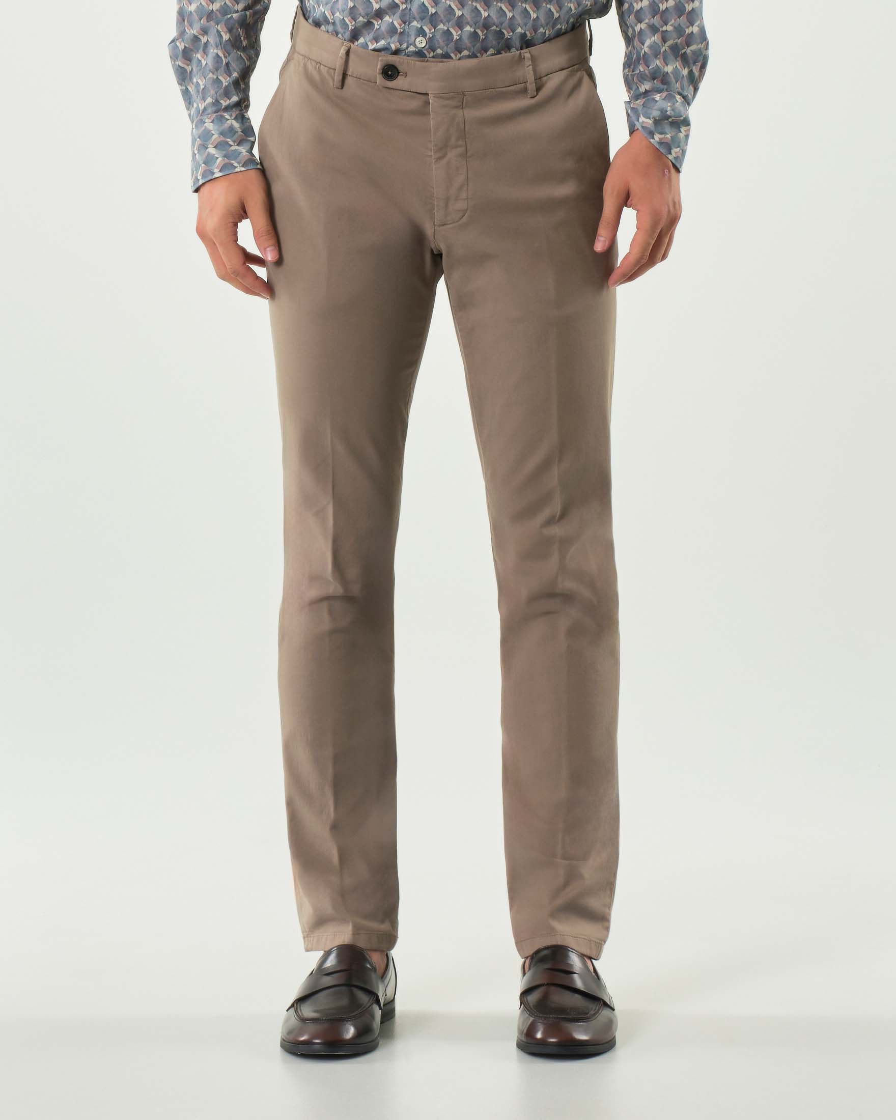 Pantalone chino Brad fango in misto lino e cotone stretch