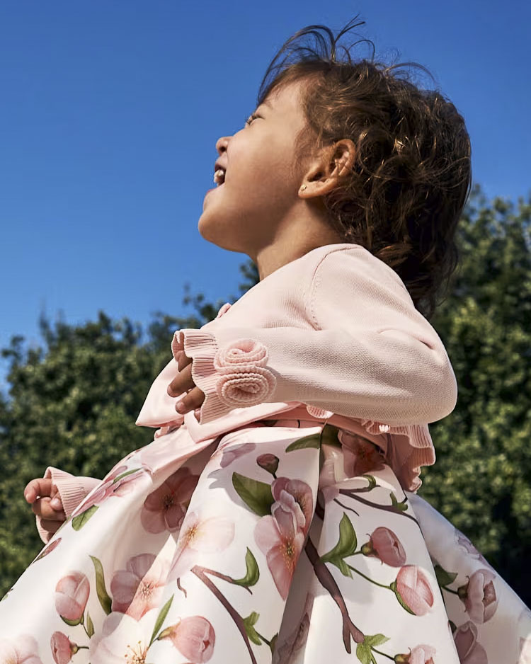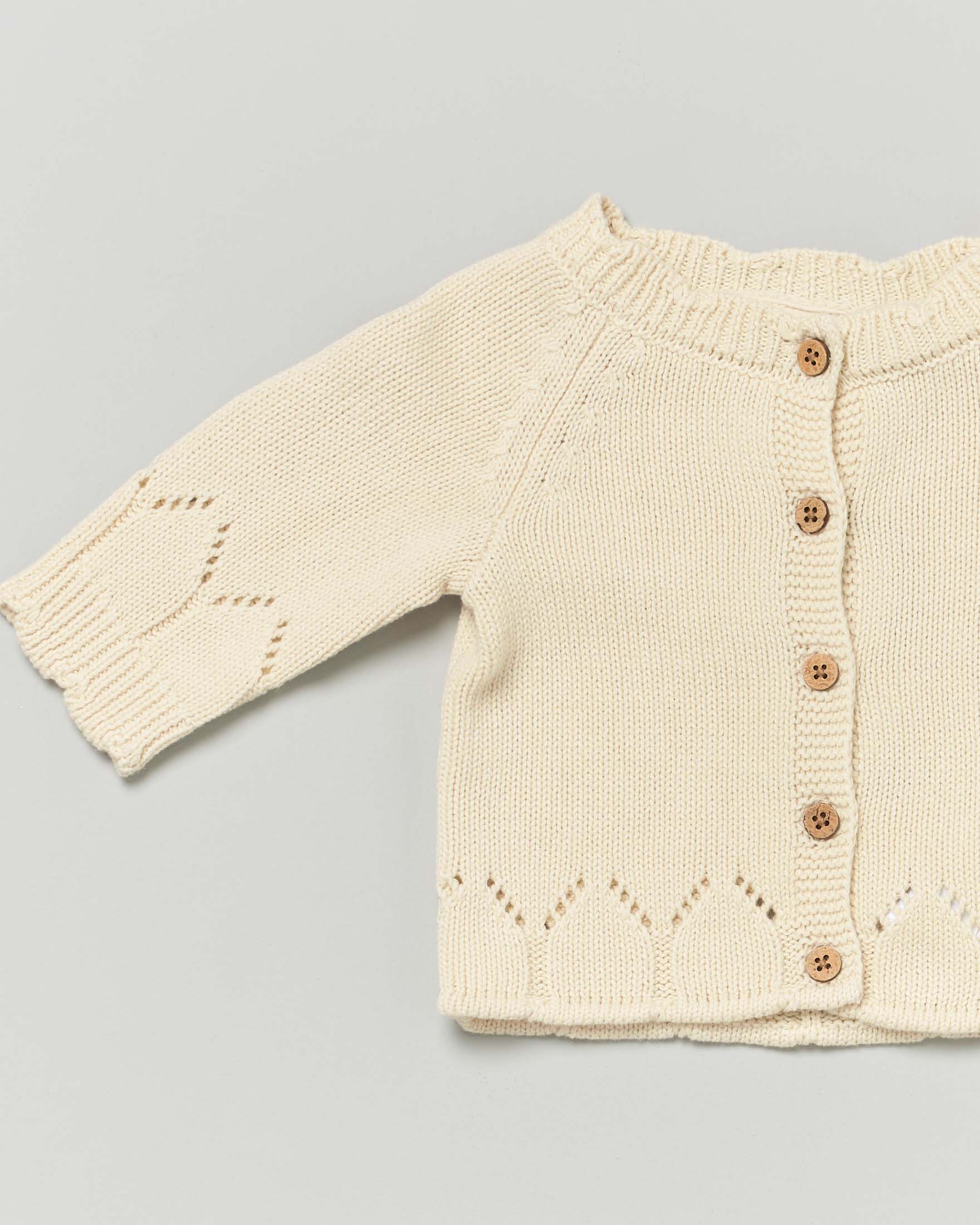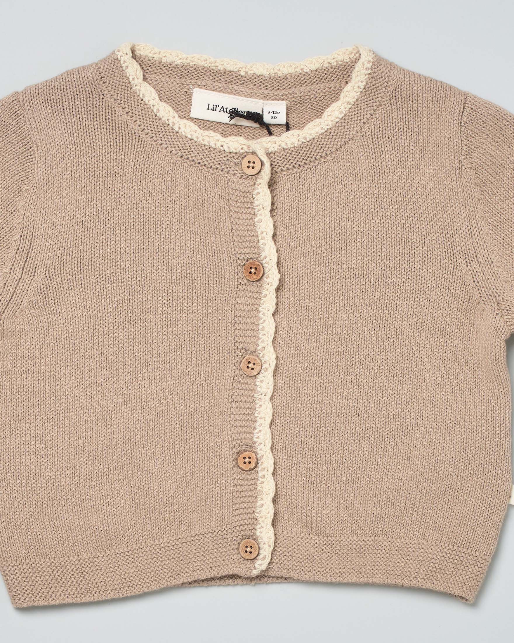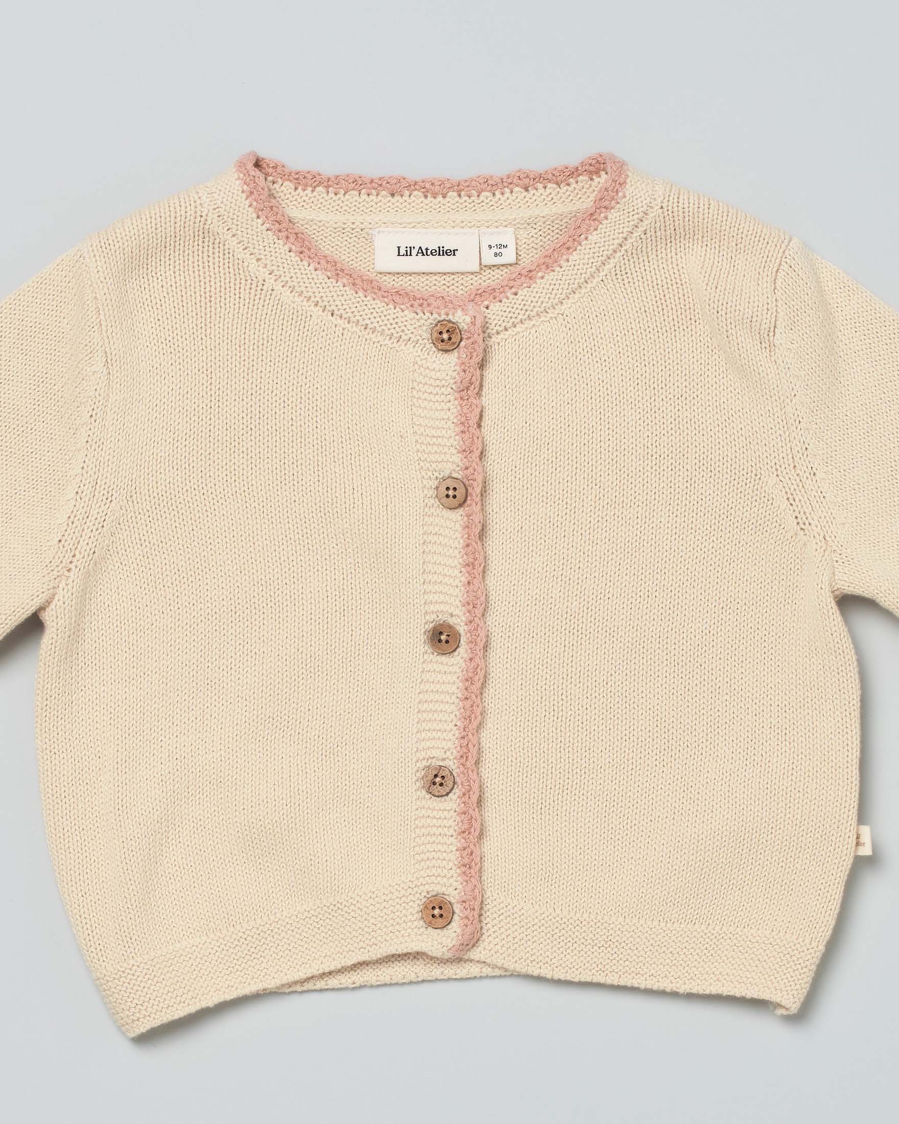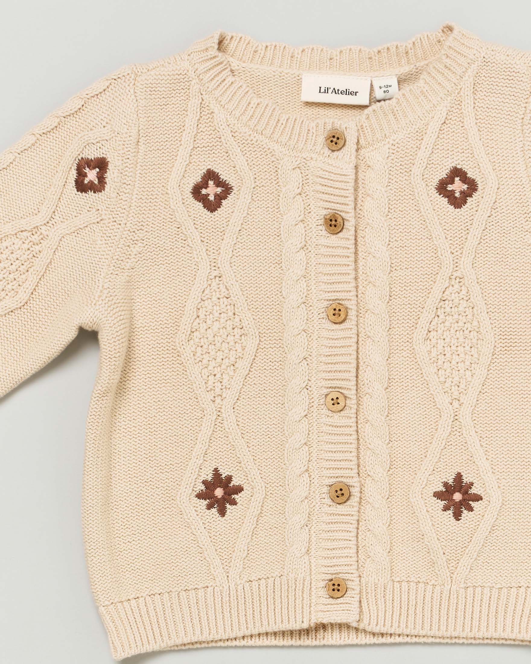 Cardigan Lil'Atelier panna in maglia di cotone con fiorellini