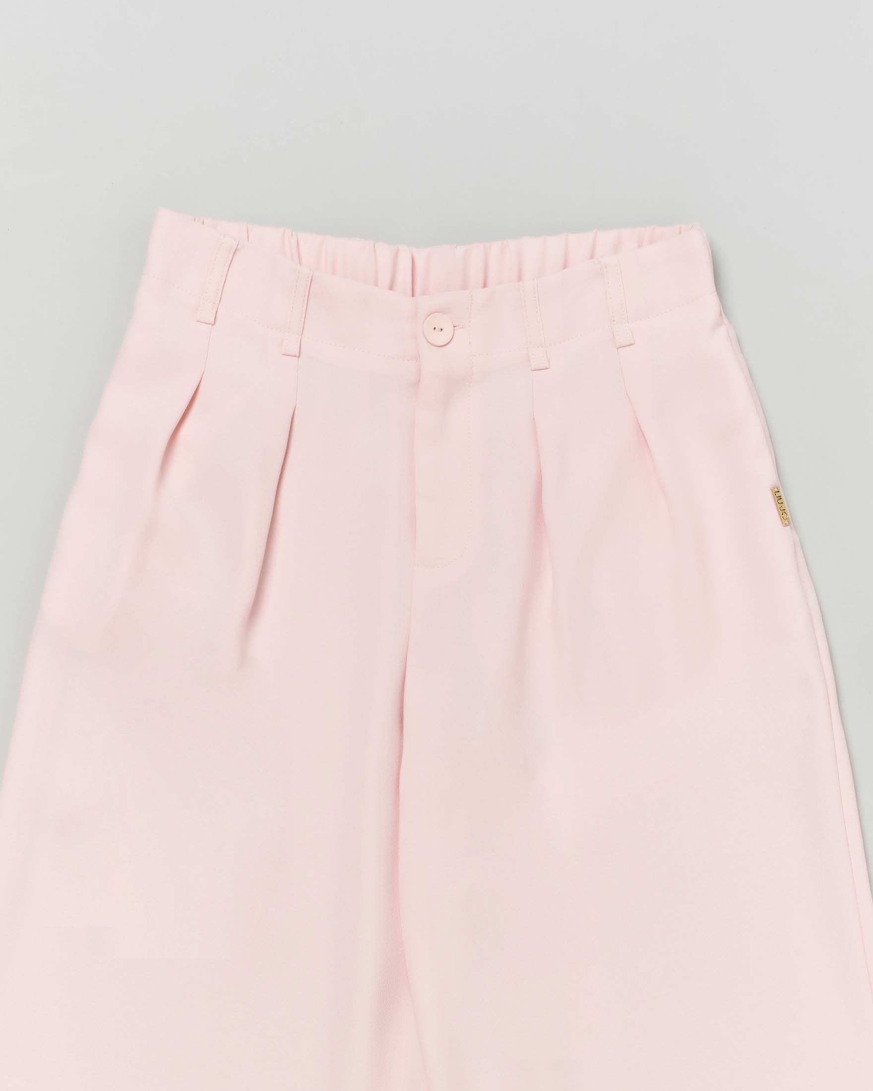 Pantalone rosa cipria in crêpe a palazzo con cinturino
