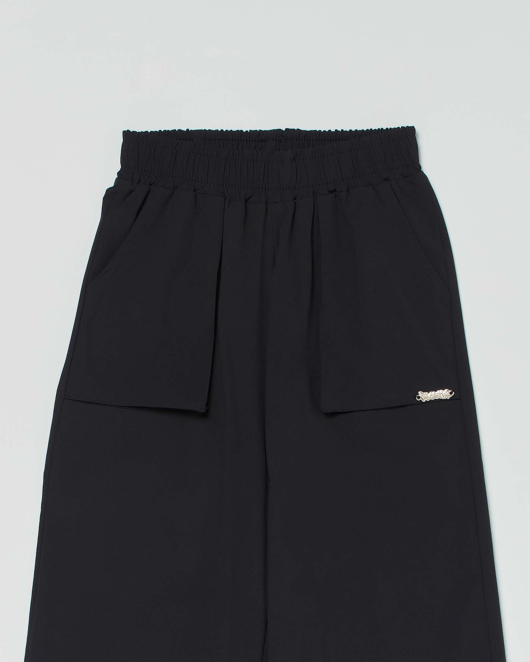 Pantalone palazzo nero in tessuto tecnico elasticizzato