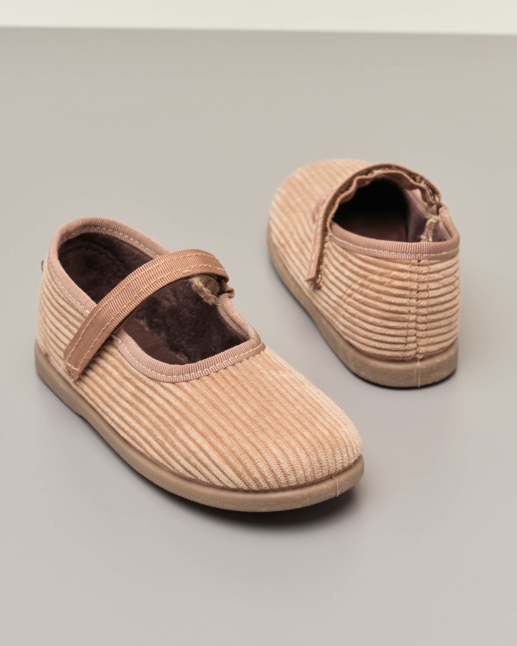 Ballerine in velluto rosa a coste con cinturino 23-27