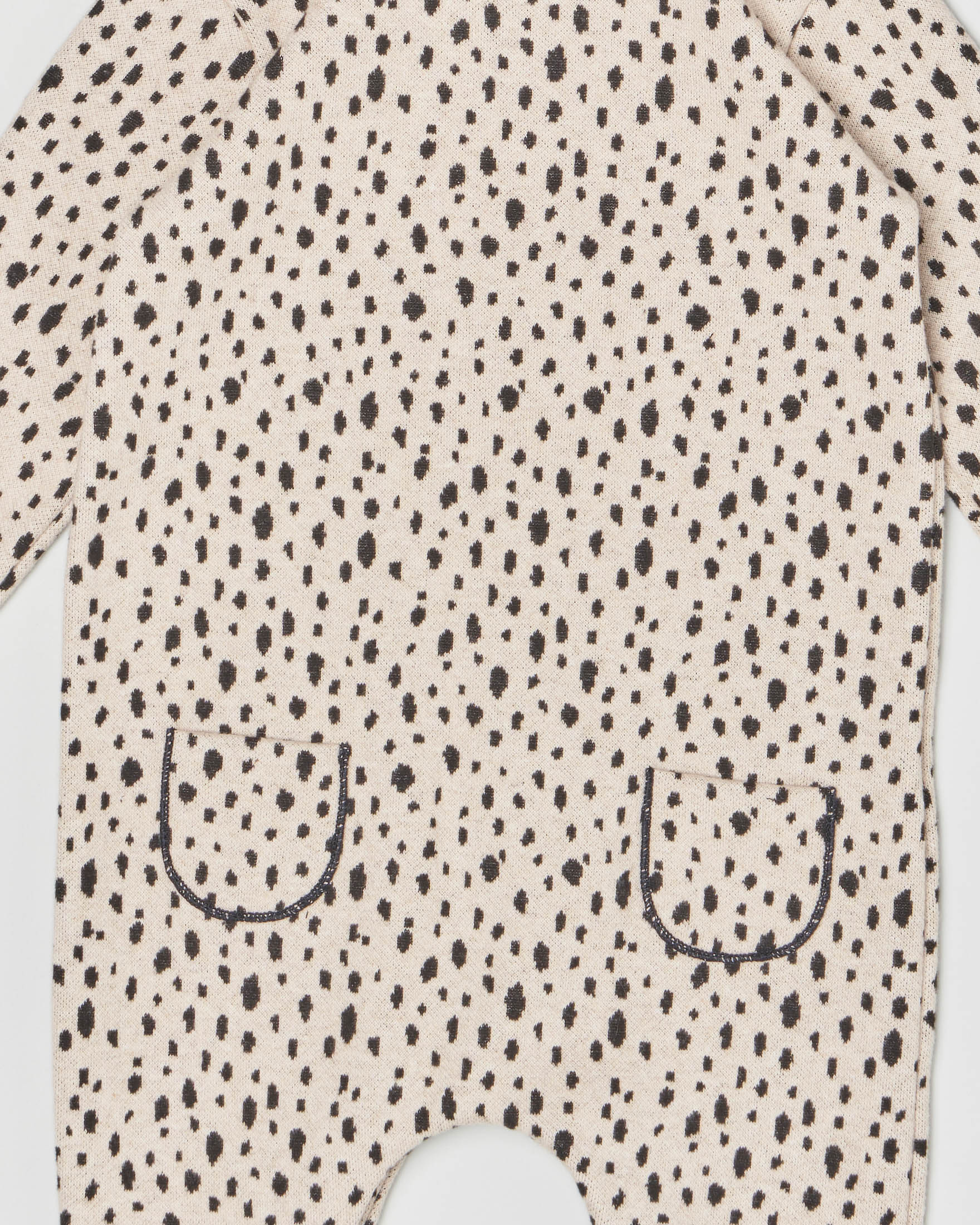 Tutina animalier in cotone con taschine sul davanti 3-9 mesi