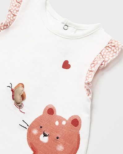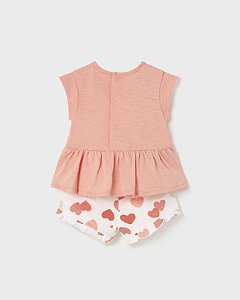 Completo composto da abitino albicocca e short bianchi in cotone con motivo micetto e cuori 4-9 mesi