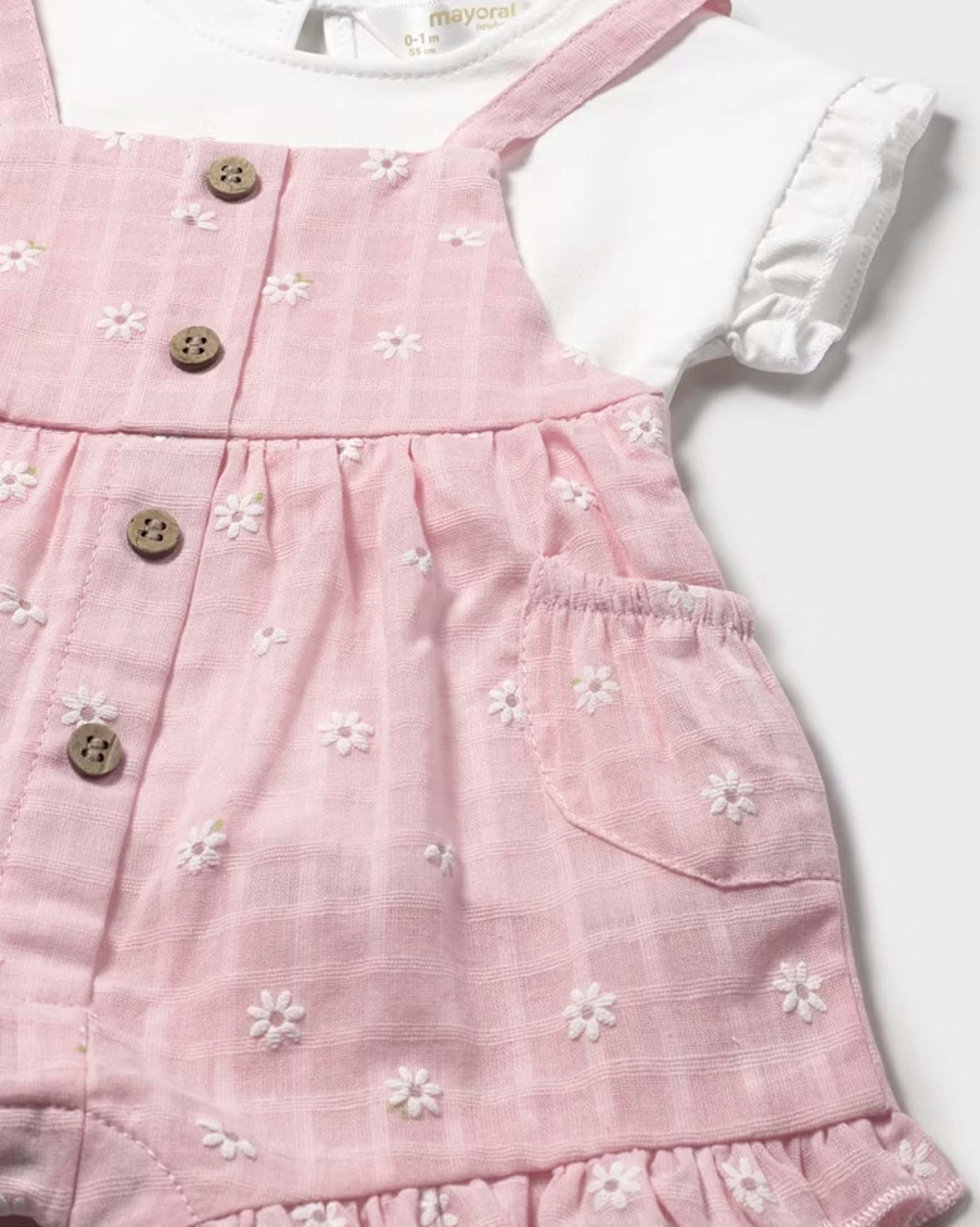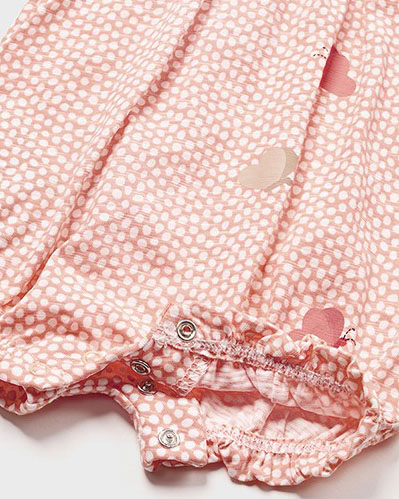 Pagliaccetto rosa antico in cotone a fantasia pois e farfalle 4-9 mesi