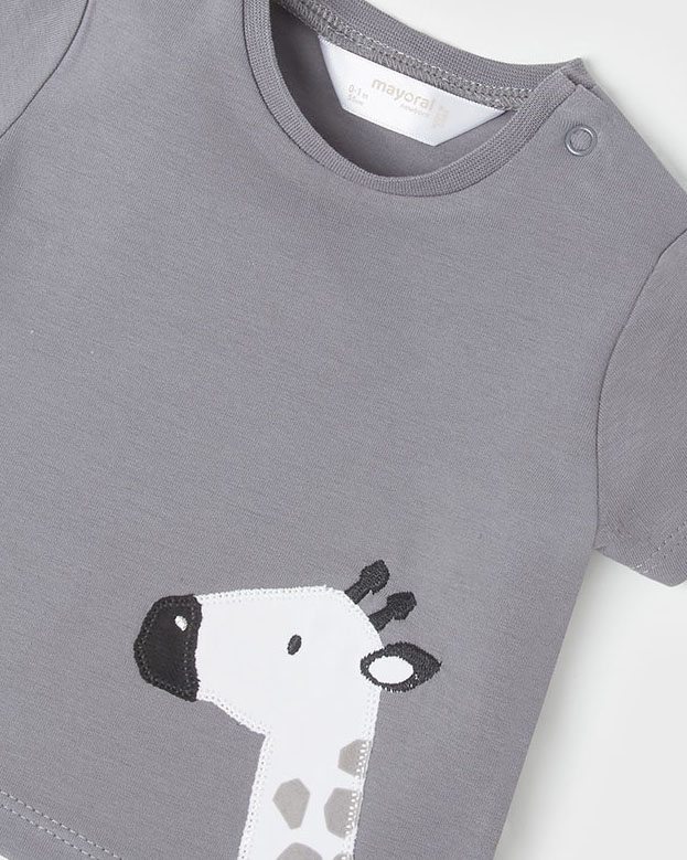 Completo composto da t-shirt con giraffa e bermuda animalier bianco e nero 4-12 mesi