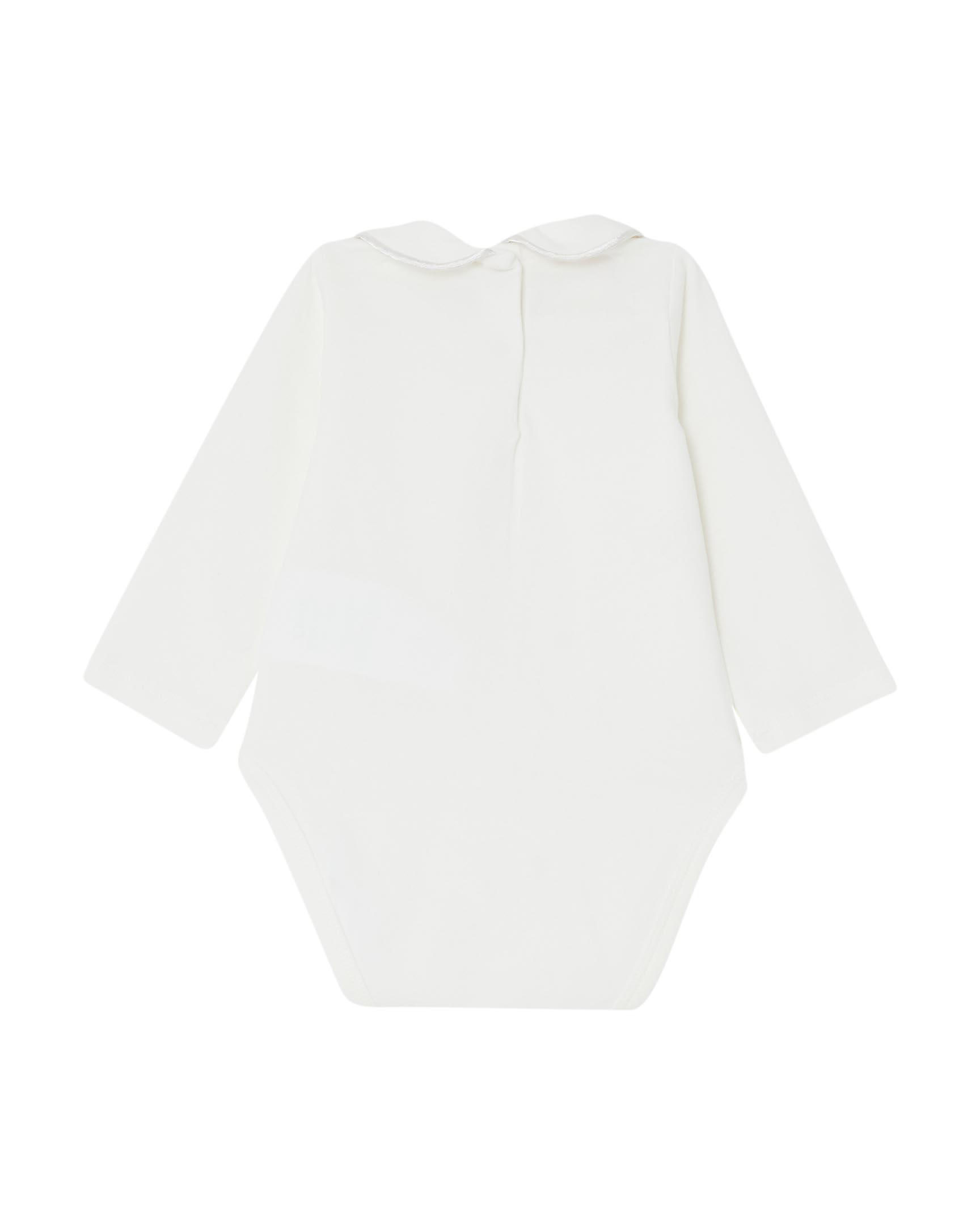 Body bianco in cotone stretch con logo dorato ricamato sul colletto tondo