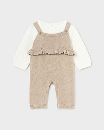 Completo beige e bianco in misto cotone tricot a tre pezzi