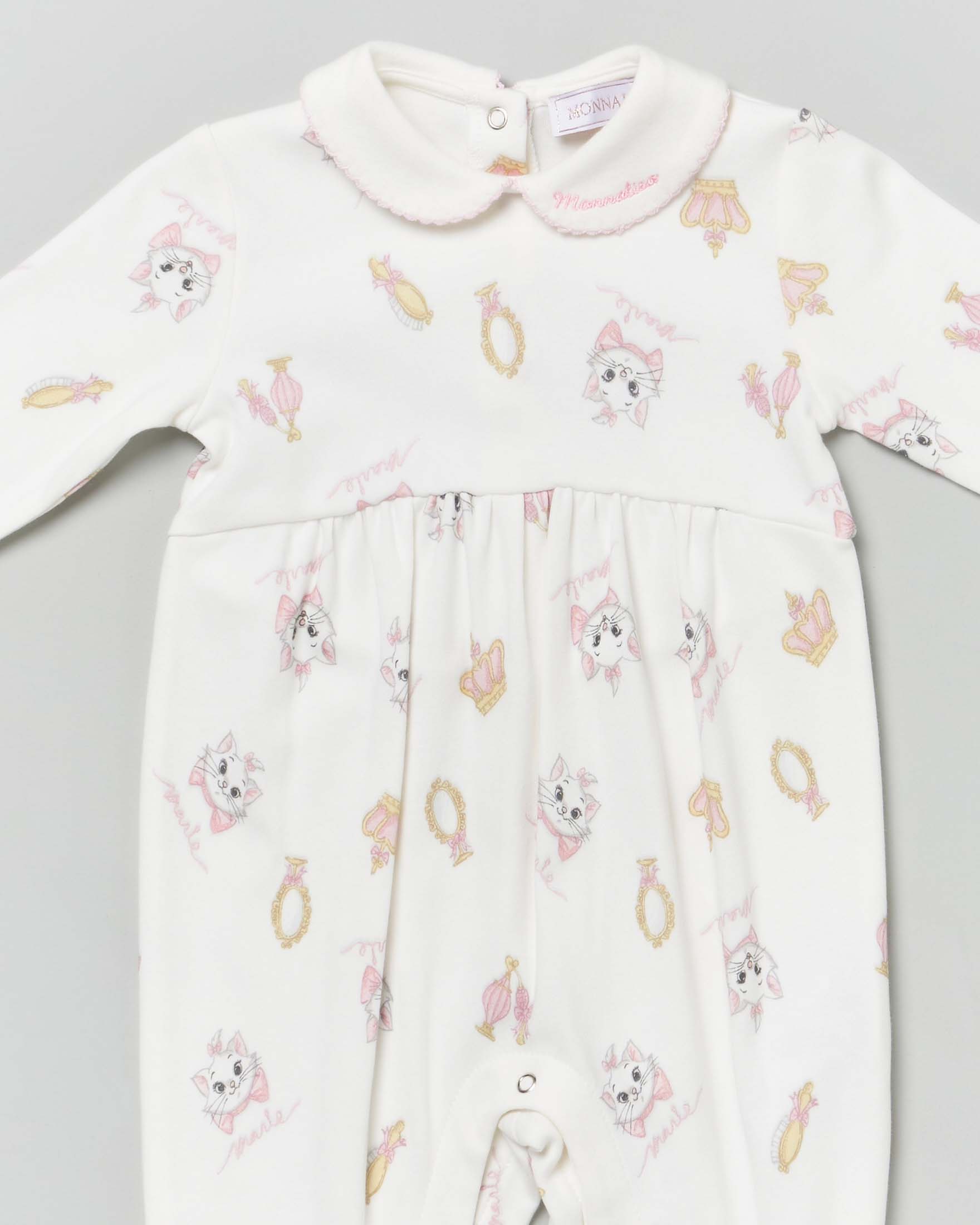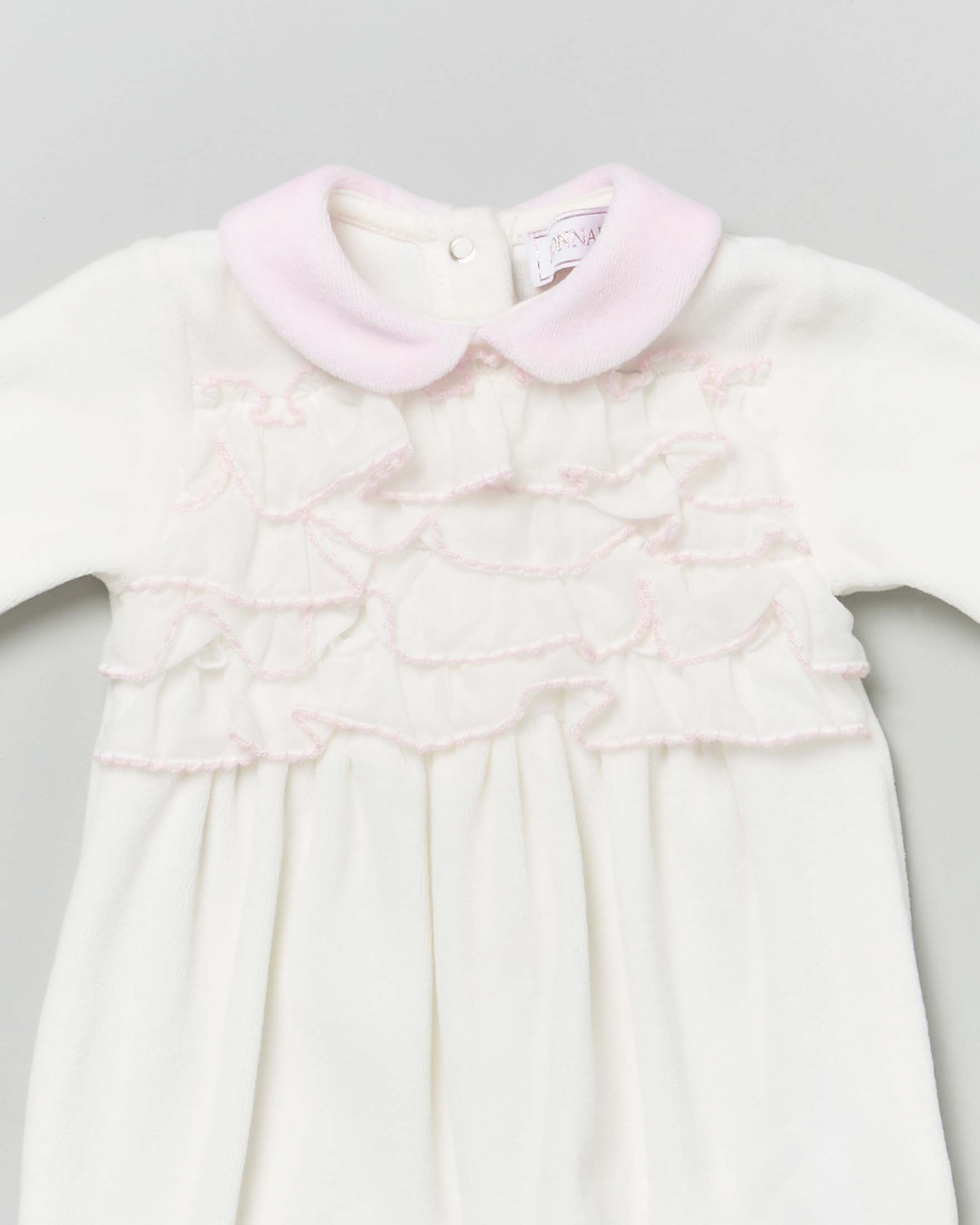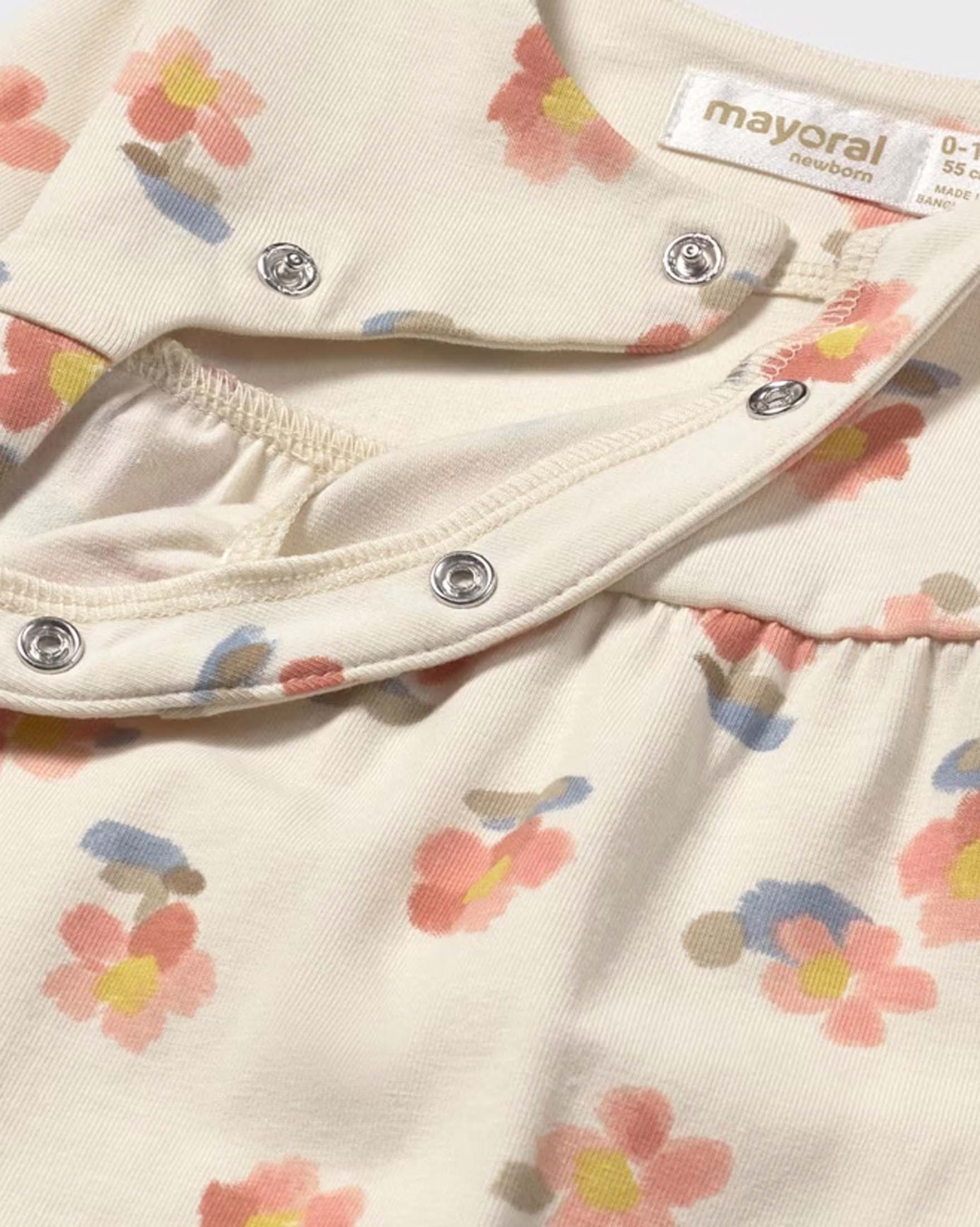 Tutina color crema con fantasia fiori multicolor e copri piedini