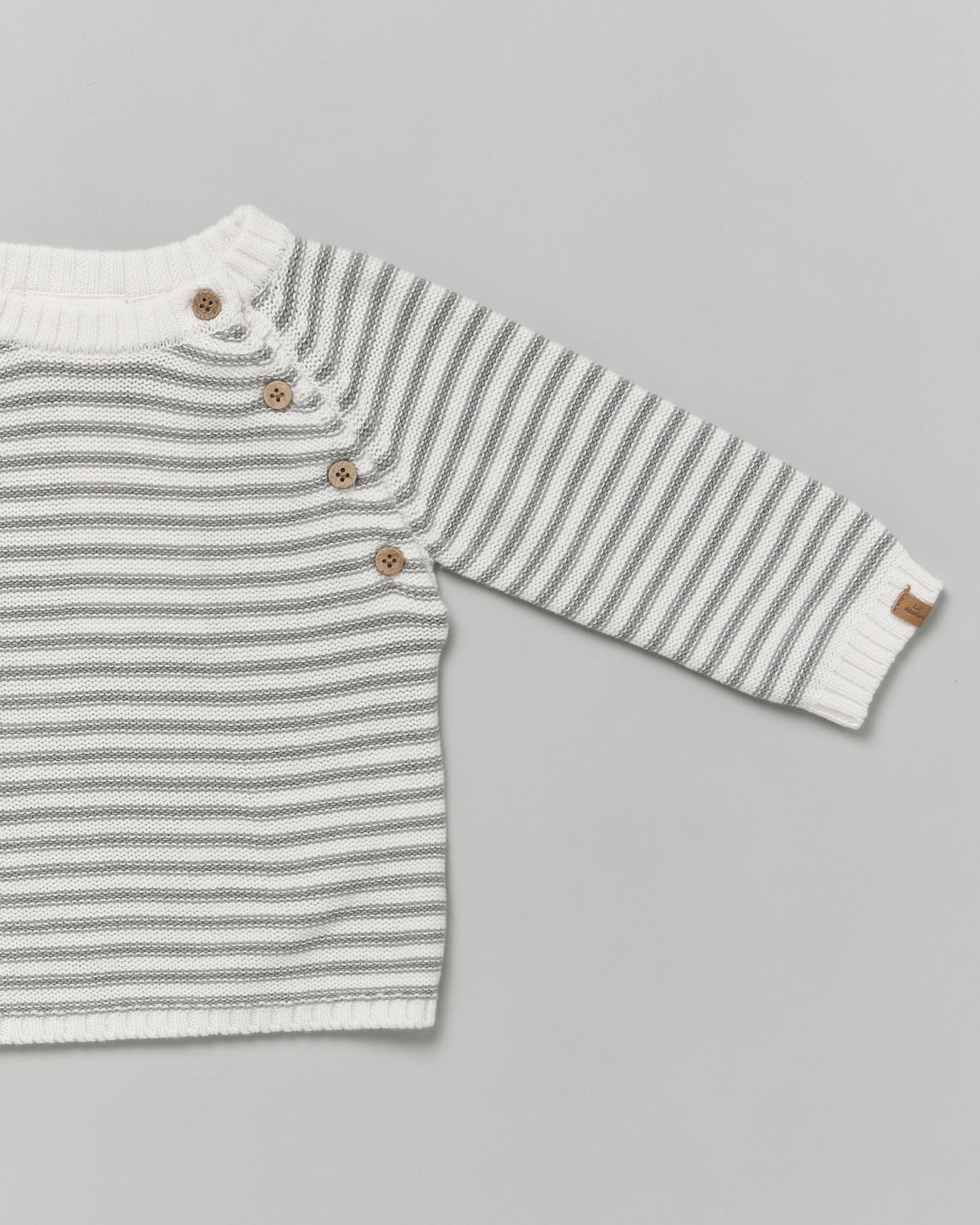 Maglia grigia serafino in fantasia finestrata a manica lunga con bottoncini sul davanti 9-18 mesi -40%