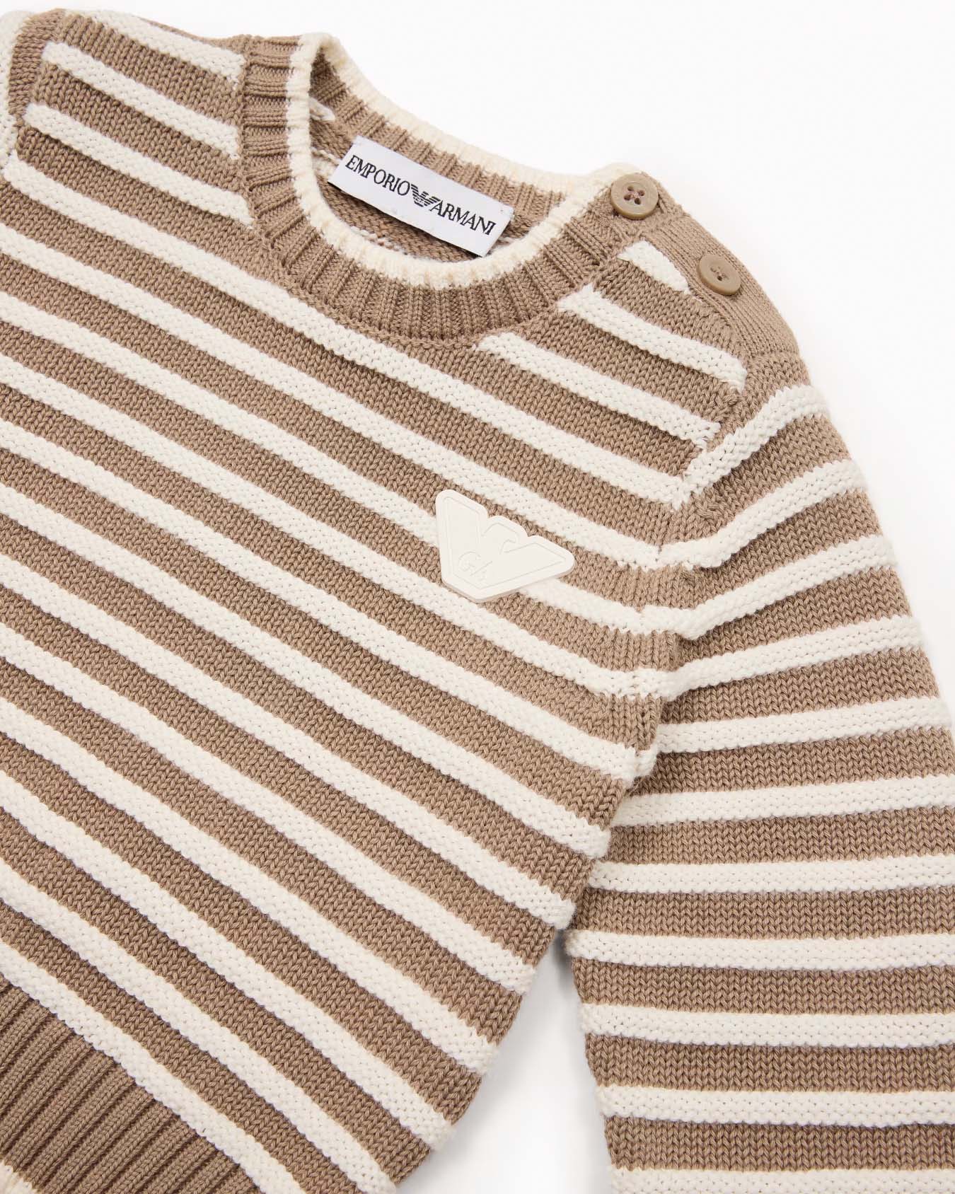 Maglia in cotone a fantasia rigata bianca e salvia -30%