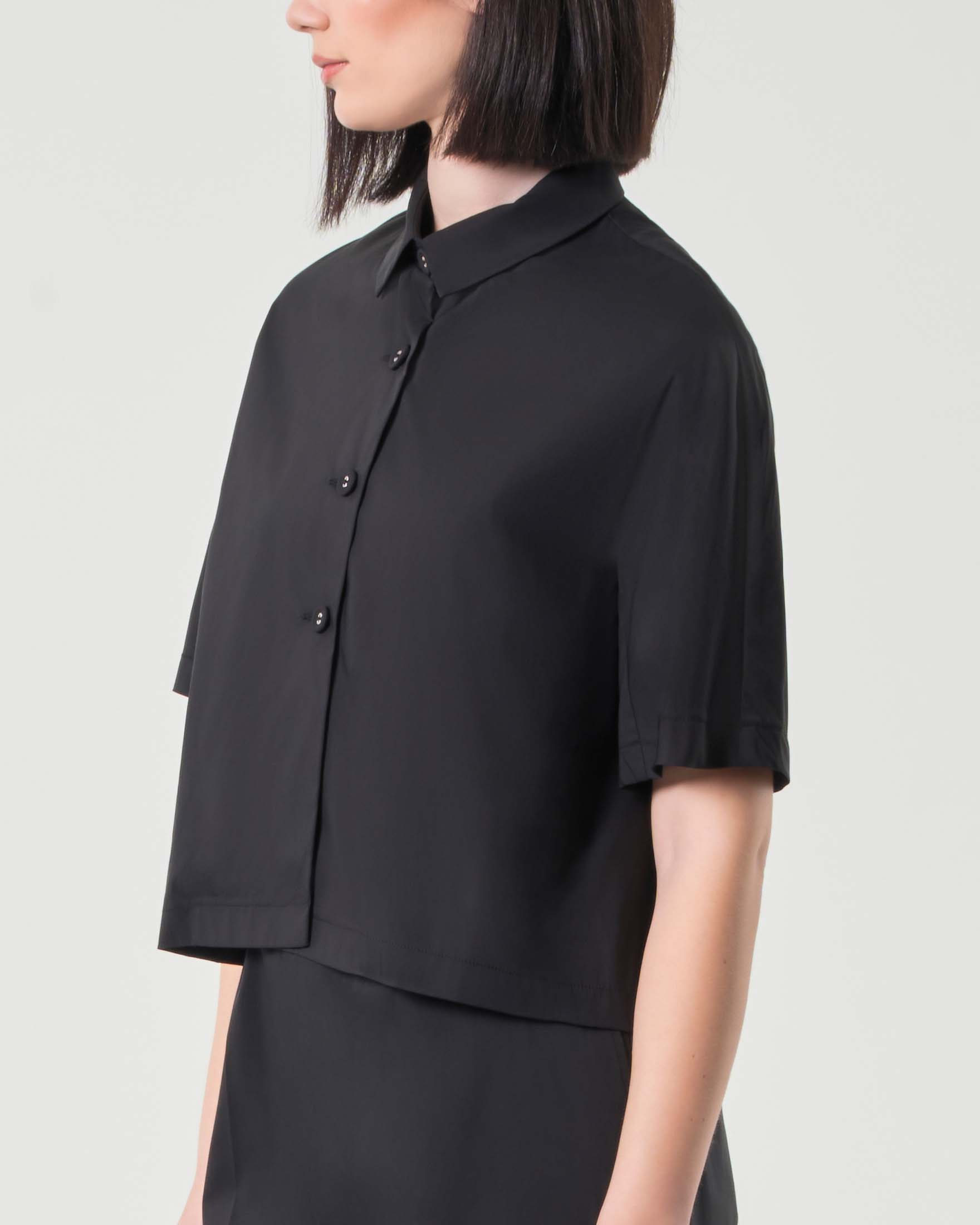 Giacca nera a camicia in popeline di cotone con maniche corte