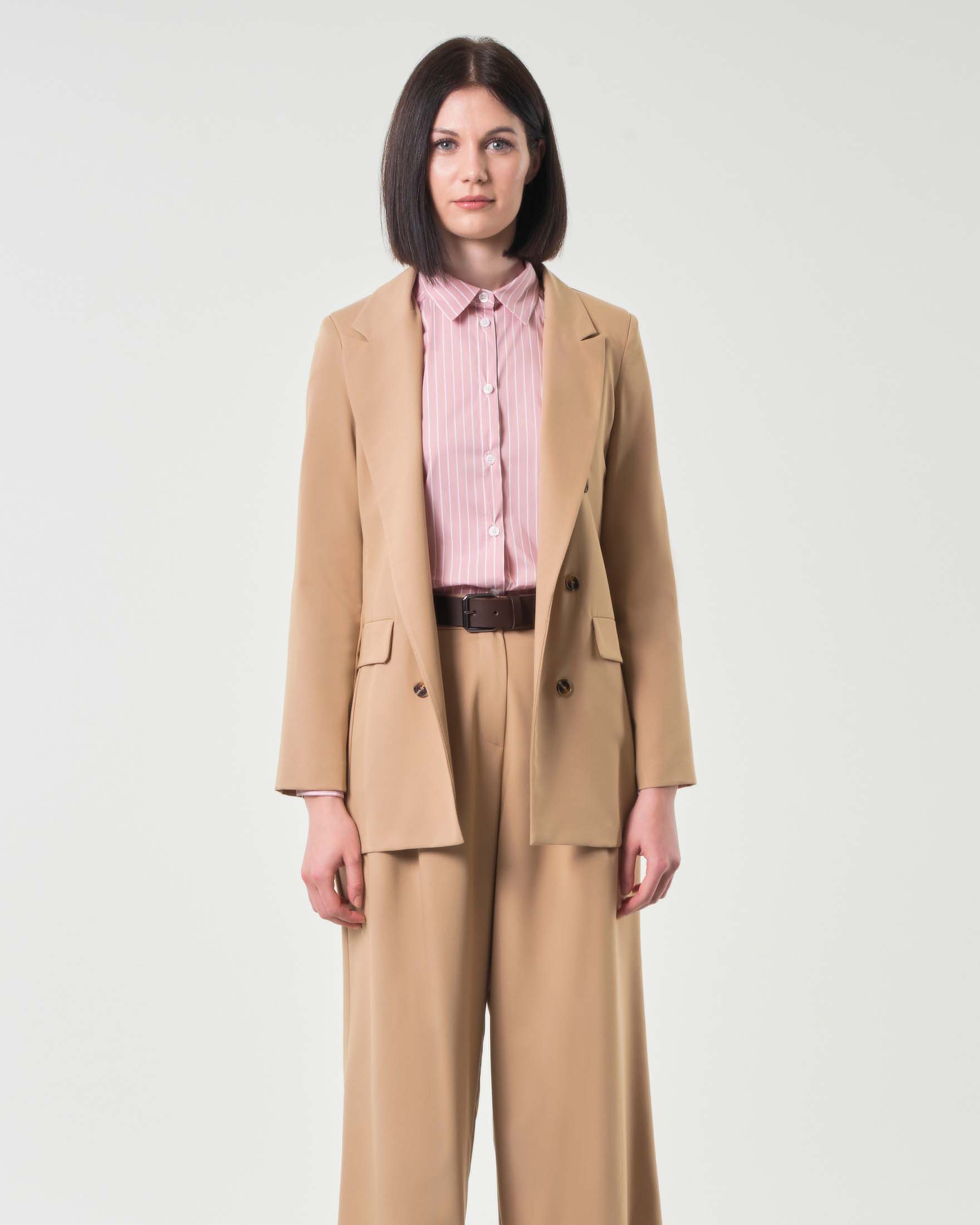 Blazer color cammello in viscosa viscosa con bottoni applicati finto doppiopetto